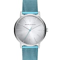Кварцевые американские женские часы с минеральным стекломМинеральное стеклоМинеральное стекло представляет собой искусственно выращенный минерал кварца. Такое стекло отличается особой устойчивостью к повреждениям и царапинам. Уступает по некоторым качествам сапфировому стеклу. ARMANI EXCHANGE AX5599, кварцевый механизм с высокой точностью. Класс водозащиты: 30 метров, позволит защитить корпус от случайных брызг или капель дождя. Корпус часов изготовлен из неражавеющей стали. Стальной браслет с частичным IP-покрытиемIP-покрытиеМетод ионного напыления. Демонстрирует повышенную устойчивость к истиранию, окислению и химическим веществам. Под воздействием высокого давления и температуры около 1500°C молекулы металла надёжно соединяются с частицами корпуса часов. миланского плетения на раскладном замкеРаскладной замокДанный вариант застежки используется только на часах с металлическим браслетом. Отличительная особенность такого крепления в том, что длина браслета становится универсальной и вы можете самостоятельно отрегулировать нужный вам размер – застежка просто двигается по браслету часов..
