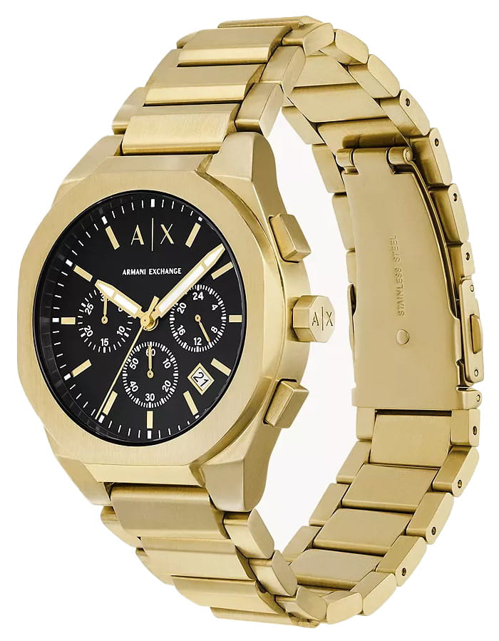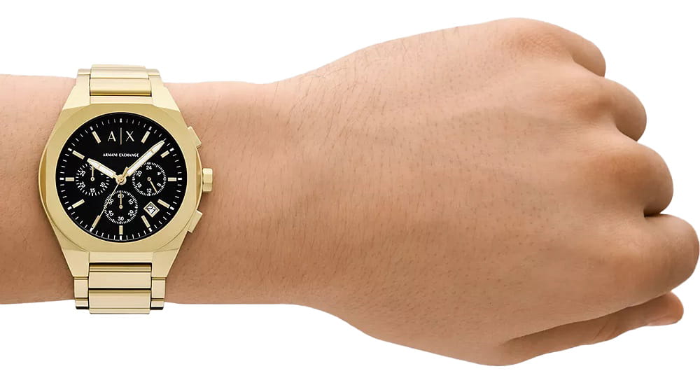 Мужские наручные часы-хронографХронографФункция позволяет измерять отрезки времени с особой точностью: часы, минуты, секунды. Верным признаком хронографа является наличие на циферблате 3 дополнительных окошек-счётчиков. Armani Exchange Rafael AX4180 сочетают в себе практичность и стильный дизайн, идеально подходя как для повседневной носки, так и для занятий спортом. Часы оснащены круглым корпусом из нержавеющей стали с IP-покрытиемIP-покрытиеМетод ионного напыления. Демонстрирует повышенную устойчивость к истиранию, окислению и химическим веществам. Под воздействием высокого давления и температуры около 1500°C молекулы металла надёжно соединяются с частицами корпуса часов., диаметром 42 мм. Особенностью модели является наличие окошка даты, расположенного между отметками 4 и 5 часов, что добавляет функциональности аксессуару. Стрелки обладают люминесцентным покрытиемЛюминесцентное покрытиеПозволяет считывать показания времени в темноте. Производители наносят на стрелки, часовые индексы, безель или поверхность циферблата светонакопительный состав, дающий холодное свечение., которое светится в темноте после зарядки на свету, обеспечивая отличную видимость в любых условиях. Защиту циферблата обеспечивают минеральное стеклоМинеральное стеклоМинеральное стекло представляет собой искусственно выращенный минерал кварца. Такое стекло отличается особой устойчивостью к повреждениям и царапинам. Уступает по некоторым качествам сапфировому стеклу., которое устойчиво к царапинам и сохраняет прозрачность на протяжении всего срока службы. Стальной браслет на раскладной застёжкеРаскладная застёжкаТакой тип застёжки используется только на браслетах из металла. Она никогда не раскрывается полностью, происходит разделение на 2 и более частей. Раскладывающая застёжка снизит вероятность потери часов к минимуму. не только комфортен в ношении, но и практичен благодаря своей прочности. Модель обладает водозащитой до 50 метров, что позволит защитить корпус от случайных брызг или капель дождя.