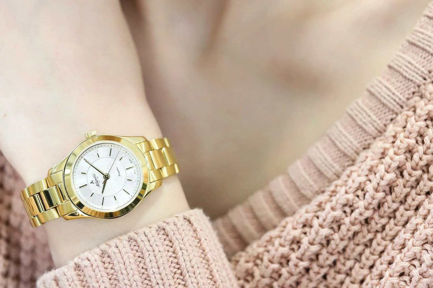 Женские швейцарские часы Atlantic Seapair Ladies 20335.45.21, кварцевый механизм с высокой точностью. Циферблат часов с люминесцентным покрытиемЛюминесцентное покрытиеПозволяет считывать показания времени в темноте. Производители наносят на стрелки, часовые индексы, безель или поверхность циферблата светонакопительный состав, дающий холодное свечение. стрелок и меток, дополнен сапфировым стекломСапфировое стеклоПрочный и надёжный материал из кристалла сапфира синтетического происхождения, характеризующийся особой твёрдостью и устойчивостью к царапинам и повреждениям., устойчивым к появлению царапин и обладающее высокой прозрачностью. Класс водозащиты: 30 метров, позволит защитить корпус от случайных брызг или капель дождя. Корпус часов изготовлен из нержавеющей стали с PVD-покрытиемPVDУльтратонкое покрытие наносится в технике вакуумного напыления, сочетает в себе нитрид титана особой прочности со слоем золота или оксида хрома. Несёт в себе декоративную или защитную функцию.. Стальной браслет с раскладной застёжкойРаскладная застёжкаТакой тип застёжки используется только на браслетах из металла. Она никогда не раскрывается полностью, происходит разделение на 2 и более частей. Раскладывающая застёжка снизит вероятность потери часов к минимуму. и PVD-покрытиемPVDУльтратонкое покрытие наносится в технике вакуумного напыления, сочетает в себе нитрид титана особой прочности со слоем золота или оксида хрома. Несёт в себе декоративную или защитную функцию..