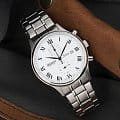 Мужские швейцарские часы-хронографХронографФункция позволяет измерять отрезки времени с особой точностью: часы, минуты, секунды. Верным признаком хронографа является наличие на циферблате 3 дополнительных окошек-счётчиков. с секундомеромСекундомерСекундоме́р — прибор, способный измерять интервалы времени с точностью до долей секунды. Atlantic Seabase 64457.41.18, кварцевый механизм с высокой точностью. Cапфировое стеклоСапфировое стеклоПрочный и надёжный материал из кристалла сапфира синтетического происхождения, характеризующийся особой твёрдостью и устойчивостью к царапинам и повреждениям. устойчивое к появлению царапин и обладающее высокой прозрачностью. Корпус и браслет часов изготовлены из нержавеющей стали. На циферблате расположены римские цифры, два дополнительных индикатора, окошко даты в положении 3 часов. Класс водозащиты: 50 метров, позволит защитить корпус от случайных брызг или капель дождя. Стальной браслет на раскладной застёжкеРаскладная застёжкаТакой тип застёжки используется только на браслетах из металла. Она никогда не раскрывается полностью, происходит разделение на 2 и более частей. Раскладывающая застёжка снизит вероятность потери часов к минимуму..