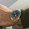 Циферблат отличается детальной функциональностью: в центре — крупные арабские цифры и стрелки, покрытые люминесцентным покрытиемЛюминесцентное покрытиеПозволяет считывать показания времени в темноте. Производители наносят на стрелки, часовые индексы, безель или поверхность циферблата светонакопительный состав, дающий холодное свечение., обеспечивающими мгновенное считывание времени даже в темноте. На «3 часах» — окошко даты, а индикатор второго часового пояса (GMT) удобно расположен на «9 часах». С внешней стороны — вращающийся безельБезельВнешний ободок, закрепляющий стекло. В спортивных часах так называется поворотное кольцо с делениями на циферблате, выполняет роль таймера – замеряет отрезки времени на шкале. Неподвижный безель – элемент декора. Однонаправленно вращающийся безель на дайверских часах позволяет фиксировать моменты погружения и выныривания на поверхность. с PVD-покрытиемPVDУльтратонкое покрытие наносится в технике вакуумного напыления, сочетает в себе нитрид титана особой прочности со слоем золота или оксида хрома. Несёт в себе декоративную или защитную функцию. с насечкой и градусной шкалой для секунд — идеален для расчёта времени пути или времени прибытия .