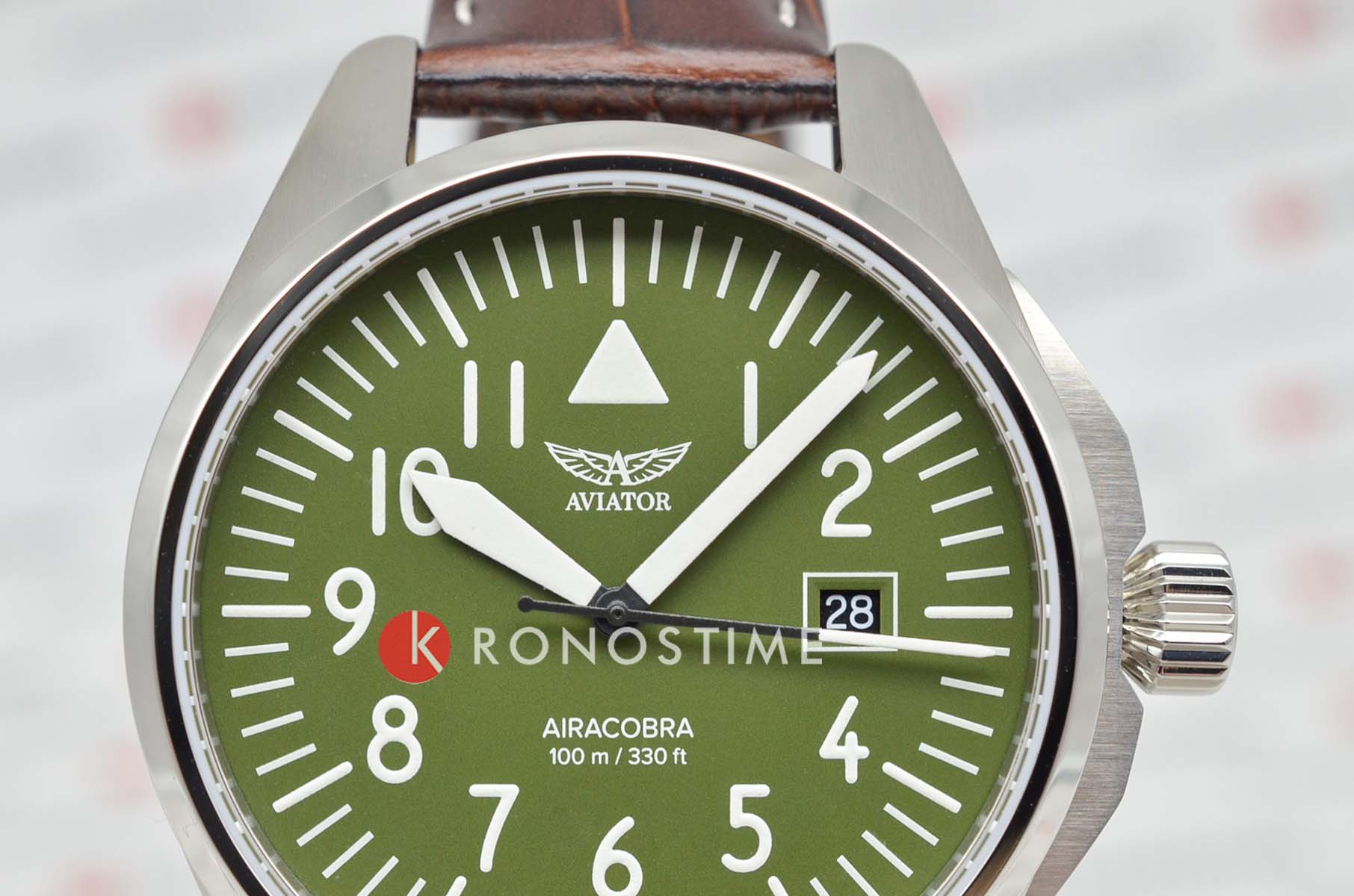 Aviator V.1.38.0.319.4 “Airacobra 43 Type A” — надёжные швейцарские пилотские часы с насыщенным функционалом и строгим авиационным дизайном. Корпус диаметром 42,8 мм выполнен из нержавеющей стали.