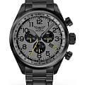 Aviator Airacobra P45 Chrono V.2.25.5.174.5 — швейцарские часы в духе пилотских инструментов, объединяющий точность, удобство и лаконичный дизайн. Диаметр корпуса — 45 мм, выполнен из нержавеющей стали 316L с PVD-покрытиемPVDУльтратонкое покрытие наносится в технике вакуумного напыления, сочетает в себе нитрид титана особой прочности со слоем золота или оксида хрома. Несёт в себе декоративную или защитную функцию., что подчёркивает техническую надёжность в образе часов. Циферблат оформлен в классическом aviator-стиле: крупные арабские цифры, широкие стрелки и чёткое деление минут позволяют считывать время мгновенно. Стрелки и метки покрыты люминесцентным покрытиемЛюминесцентное покрытиеПозволяет считывать показания времени в темноте. Производители наносят на стрелки, часовые индексы, безель или поверхность циферблата светонакопительный состав, дающий холодное свечение. Superluminova для отличной читаемости при слабом освещении. Циферблат защищён стойким сапфировым стекломСапфировое стеклоПрочный и надёжный материал из кристалла сапфира синтетического происхождения, характеризующийся особой твёрдостью и устойчивостью к царапинам и повреждениям. с антибликовым покрытиемАнтибликовое покрытиеСлой оксида металла в 0,13-0,3 микрон, благодаря которому стекло часов не бликует и не отражает свет. Антибликовое покрытие уменьшает отражение света в 10 раз, обеспечивая отличную читаемость показателей циферблата.. У модели присутствуют дата и точный откидной механизм завинчивающейся заводной головки и задней крышки, обеспечивающий надёжную водозащиту до 100 м и защиту от ударов. Внутри установлен швейцарский кварцевый механизм, который обеспечивает функции хронографаХронографФункция позволяет измерять отрезки времени с особой точностью: часы, минуты, секунды. Верным признаком хронографа является наличие на циферблате 3 дополнительных окошек-счётчиков.. Функции добавить (ADD) и разделить (SPLIT). Часы комплектуются браслетом из нержавеющей стали с PVD-покрытиемPVDУльтратонкое покрытие наносится в технике вакуумного напыления, сочетает в себе нитрид титана особой прочности со слоем золота или оксида хрома. Несёт в себе декоративную или защитную функцию. с удобной раскладной застёжкойРаскладная застёжкаТакой тип застёжки используется только на браслетах из металла. Она никогда не раскрывается полностью, происходит разделение на 2 и более частей. Раскладывающая застёжка снизит вероятность потери часов к минимуму., обеспечивающей надёжную фиксацию и комфорт при ежедневной носке. Эти изысканные часы так же обладают функциями тахиметраТахиметрРазмеченная шкала, располагается на ободке или безеле часов. Тахиметр позволяет рассчитать скорость на определённом участке пути, расстояние измеряется в километрах или милях., секундомераСекундомерСекундоме́р — прибор, способный измерять интервалы времени с точностью до долей секунды. и телеметра. Airacobra — это практичный и стильный инструмент для путешествий и активной повседневности, объединяющий авиационную эстетику, точный механизм и удобство.