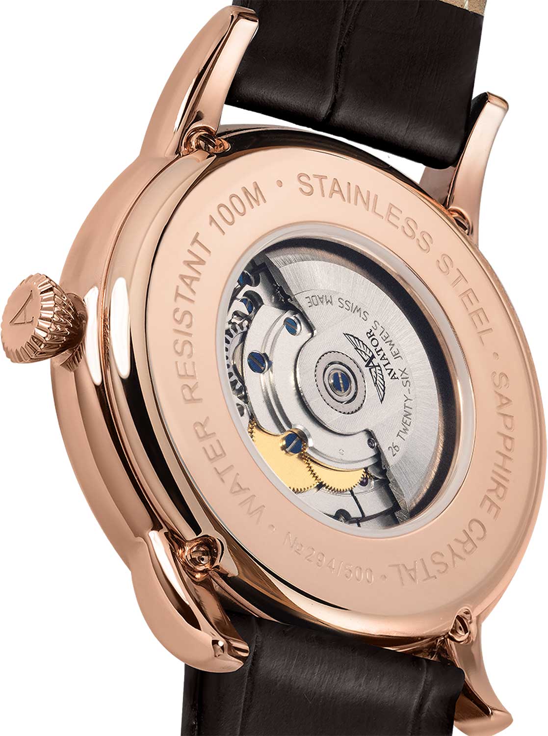 Aviator Douglas Day Date V.3.20.2.226.4 — швейцарские часы в классике авиадизайна, сочетающие безупречную читаемость и высокую надёжность. Корпус диаметром 45 мм выполнен из нержавеющей стали с PVD-покрытиемPVDУльтратонкое покрытие наносится в технике вакуумного напыления, сочетает в себе нитрид титана особой прочности со слоем золота или оксида хрома. Несёт в себе декоративную или защитную функцию. цвета розового золота. Накладные метки выполнены в виде штрихов. Окошко даты находится в положении 6 часов. День недели находится в положении 12 часов. Часовые метки и стрелки покрыты люминесцентным покрытиемЛюминесцентное покрытиеПозволяет считывать показания времени в темноте. Производители наносят на стрелки, часовые индексы, безель или поверхность циферблата светонакопительный состав, дающий холодное свечение. Superluminova, позволяющим легко определять время даже в тёмное время суток. Поверхность защищена прочным сапфировым стекломСапфировое стеклоПрочный и надёжный материал из кристалла сапфира синтетического происхождения, характеризующийся особой твёрдостью и устойчивостью к царапинам и повреждениям. с антибликовым покрытием, устойчивым к царапинам. Сердце модели — швейцарский механизм ETA 2834-2, известный своей точностью и долговечностью. Водозащита 50 метров позволит защитить корпус от случайных брызг или капель дождя. Завинчивающаяся головка и задняя крышка обеспечивают уверенную ударопрочностьУдаропрочный корпусМеханизм заключён в корпус, выполненный из современных материалов, устойчивых к ударам, механическим повреждениям и падению с высоты: инновационный пластик, карбон, нержавеющая сталь, титан. и надёжную защиту от влаги и пыли. В механизме 25 камней, запас хода до 38 часов. Модель дополнена кожаным ремешком с выразительной текстурой и классическим стилем, закреплённым с помощью застёжке-бабочке с кнопкамиЗастёжка "бабочка"Такой вид застёжки дополняется предохранителями, помогающими избежать случайного раскрытия браслета. Обладают изящным исполнением. — для максимального комфорта и лёгкости в повседневном использовании. Aviator — это образец лётной точности, инженерной чёткости и сдержанной роскоши, идеально подходящий для тех, кто ценит функциональность и уверенность в каждом элементе.