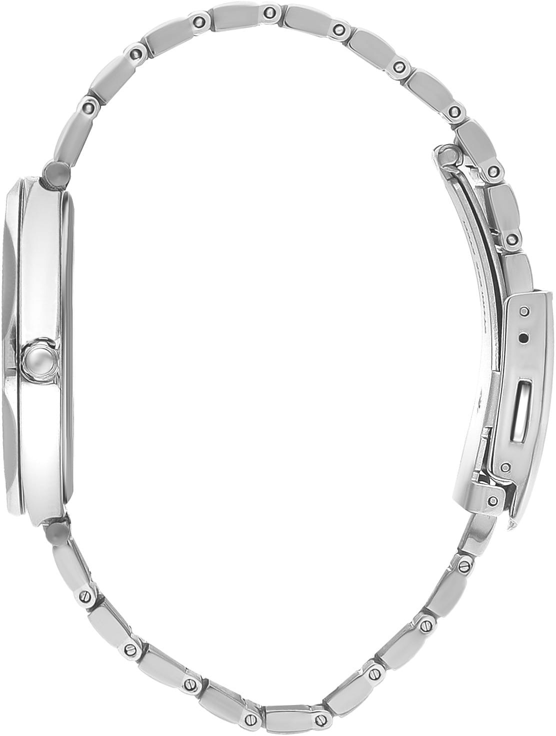 Американские женские часы с минеральным стекломМинеральное стеклоМинеральное стекло представляет собой искусственно выращенный минерал кварца. Такое стекло отличается особой устойчивостью к повреждениям и царапинам. Уступает по некоторым качествам сапфировому стеклу. Beverly Hills Polo Club BP3399C.330, кварцевый механизм с высокой точностью. Корпус и браслет часов изготовлены из нержавеющей стали. БезельБезельВнешний ободок, закрепляющий стекло. В спортивных часах так называется поворотное кольцо с делениями на циферблате, выполняет роль таймера – замеряет отрезки времени на шкале. Неподвижный безель – элемент декора. Однонаправленно вращающийся безель на дайверских часах позволяет фиксировать моменты погружения и выныривания на поверхность. и циферблат украшены синтетическими бриллиантами. Стрелки с люминесцентным покрытиемЛюминесцентное покрытиеПозволяет считывать показания времени в темноте. Производители наносят на стрелки, часовые индексы, безель или поверхность циферблата светонакопительный состав, дающий холодное свечение.. Класс водозащиты: 50 метров, позволит защитить корпус от случайных брызг или капель дождя. Стальной браслет на раскладной застёжкеРаскладная застёжкаТакой тип застёжки используется только на браслетах из металла. Она никогда не раскрывается полностью, происходит разделение на 2 и более частей. Раскладывающая застёжка снизит вероятность потери часов к минимуму..