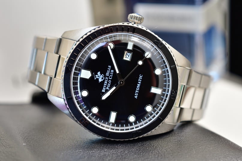 Американские мужские часы с минеральным стекломМинеральное стеклоМинеральное стекло представляет собой искусственно выращенный минерал кварца. Такое стекло отличается особой устойчивостью к повреждениям и царапинам. Уступает по некоторым качествам сапфировому стеклу. Beverly Hills Polo Club BP3576X.350, механический механизм (автоматический калибр) с высокой точностью. Сапфировое стеклоСапфировое стеклоПрочный и надёжный материал из кристалла сапфира синтетического происхождения, характеризующийся особой твёрдостью и устойчивостью к царапинам и повреждениям. устойчивое к появлению царапин, обладающее высокой прозрачностью. Класс водозащиты: 100 метров, позволит плавать, нырять и заниматься другими водными видами спорта. Корпус часов изготовлен из стали. Стальной браслет на раскладной застёжкеРаскладная застёжкаТакой тип застёжки используется только на браслетах из металла. Она никогда не раскрывается полностью, происходит разделение на 2 и более частей. Раскладывающая застёжка снизит вероятность потери часов к минимуму.. БезельБезельВнешний ободок, закрепляющий стекло. В спортивных часах так называется поворотное кольцо с делениями на циферблате, выполняет роль таймера – замеряет отрезки времени на шкале. Неподвижный безель – элемент декора. Однонаправленно вращающийся безель на дайверских часах позволяет фиксировать моменты погружения и выныривания на поверхность. с IP-покрытиемIP-покрытиеМетод ионного напыления. Демонстрирует повышенную устойчивость к истиранию, окислению и химическим веществам. Под воздействием высокого давления и температуры около 1500°C молекулы металла надёжно соединяются с частицами корпуса часов..Стрелки и метки с люминесцентным покрытиемЛюминесцентное покрытиеПозволяет считывать показания времени в темноте. Производители наносят на стрелки, часовые индексы, безель или поверхность циферблата светонакопительный состав, дающий холодное свечение..