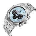 Браслет из стали завершён застёжкой-бабочкой с кнопкамиЗастёжка "бабочка"Такой вид застёжки дополняется предохранителями, помогающими избежать случайного раскрытия браслета. Обладают изящным исполнением. — с кнопочным механизмом для удобного снятия. Водозащита до 50 м удовлетворит потребности как делового, так и активного образа жизни.