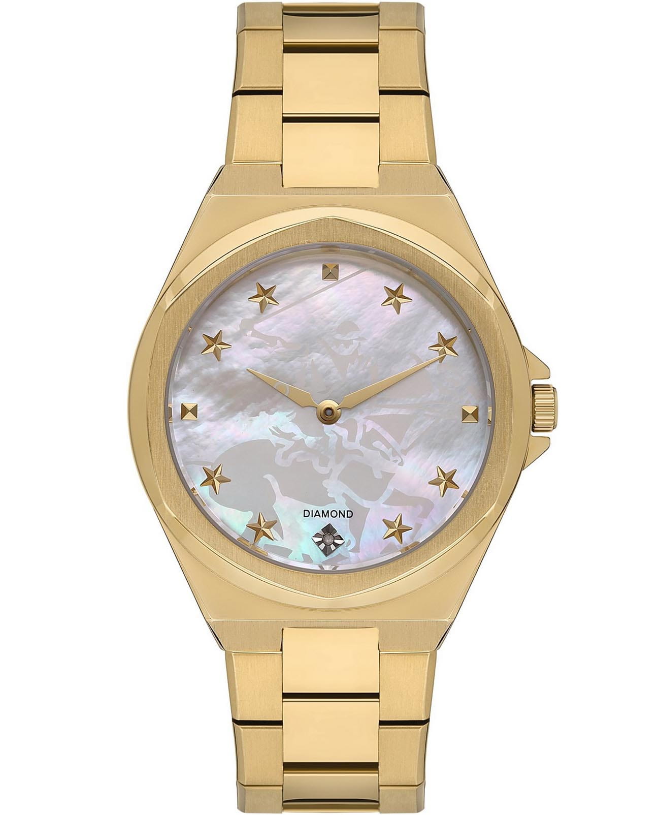 Женские наручные часы Beverly Hills Polo Club BP3570X.120 с надёжным кварцевым механизмом. Минеральное стеклоМинеральное стеклоМинеральное стекло представляет собой искусственно выращенный минерал кварца. Такое стекло отличается особой устойчивостью к повреждениям и царапинам. Уступает по некоторым качествам сапфировому стеклу. устойчивое к мелким механическим повреждениям. Корпус и браслет часов изготовлены из нержавеющей стали с IP-покрытиемIP-покрытиеМетод ионного напыления. Демонстрирует повышенную устойчивость к истиранию, окислению и химическим веществам. Под воздействием высокого давления и температуры около 1500°C молекулы металла надёжно соединяются с частицами корпуса часов.. Стальной браслет на раскладной застёжкеРаскладная застёжкаТакой тип застёжки используется только на браслетах из металла. Она никогда не раскрывается полностью, происходит разделение на 2 и более частей. Раскладывающая застёжка снизит вероятность потери часов к минимуму.. Класс водозащиты: 50 метров, позволит защитить корпус от случайных брызг или капель дождя. Циферблат инкрустирован синтетическим бриллиантом.