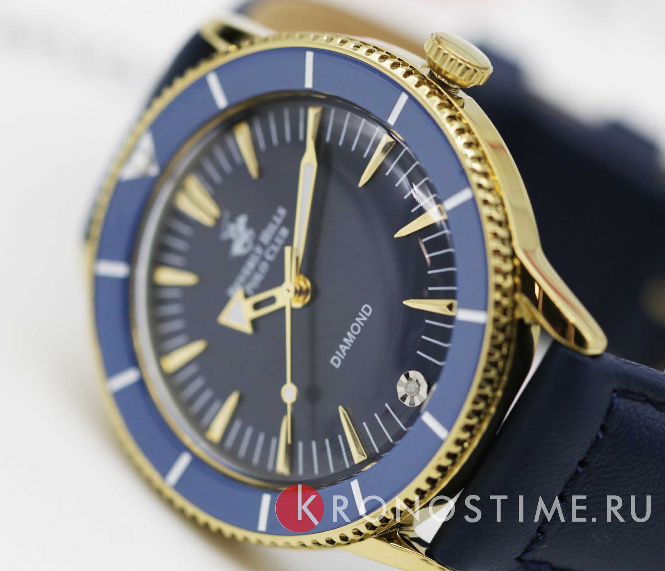 Американские женские часы с минеральным стекломМинеральное стеклоМинеральное стекло представляет собой искусственно выращенный минерал кварца. Такое стекло отличается особой устойчивостью к повреждениям и царапинам. Уступает по некоторым качествам сапфировому стеклу. Beverly Hills Polo Club BP3580C.199, кварцевый механизм с высокой точностью. Класс водозащиты: 50 метров, позволит защитить корпус от случайных брызг или капель дождя. Корпус часов изготовлен из суперметалла с IP-покрытиемIP-покрытиеМетод ионного напыления. Демонстрирует повышенную устойчивость к истиранию, окислению и химическим веществам. Под воздействием высокого давления и температуры около 1500°C молекулы металла надёжно соединяются с частицами корпуса часов.. Кожаный ремешок на стандартной застёжке. Стрелки и метки с люминесцентным покрытиемЛюминесцентное покрытиеПозволяет считывать показания времени в темноте. Производители наносят на стрелки, часовые индексы, безель или поверхность циферблата светонакопительный состав, дающий холодное свечение.. Циферблат инкрустирован синтетическим бриллиантом. БезельБезельВнешний ободок, закрепляющий стекло. В спортивных часах так называется поворотное кольцо с делениями на циферблате, выполняет роль таймера – замеряет отрезки времени на шкале. Неподвижный безель – элемент декора. Однонаправленно вращающийся безель на дайверских часах позволяет фиксировать моменты погружения и выныривания на поверхность. с PVD-покрытиемPVDУльтратонкое покрытие наносится в технике вакуумного напыления, сочетает в себе нитрид титана особой прочности со слоем золота или оксида хрома. Несёт в себе декоративную или защитную функцию..