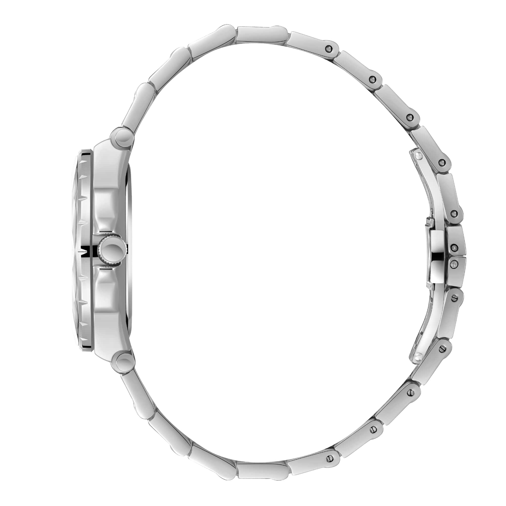 Стальной браслет на застёжке-бабочке с кнопкамиЗастёжка "бабочка"Такой вид застёжки дополняется предохранителями, помогающими избежать случайного раскрытия браслета. Обладают изящным исполнением. . Часы обладают водозащитой до 30 метров, позволит защитить корпус от случайных брызг или капель дождя.