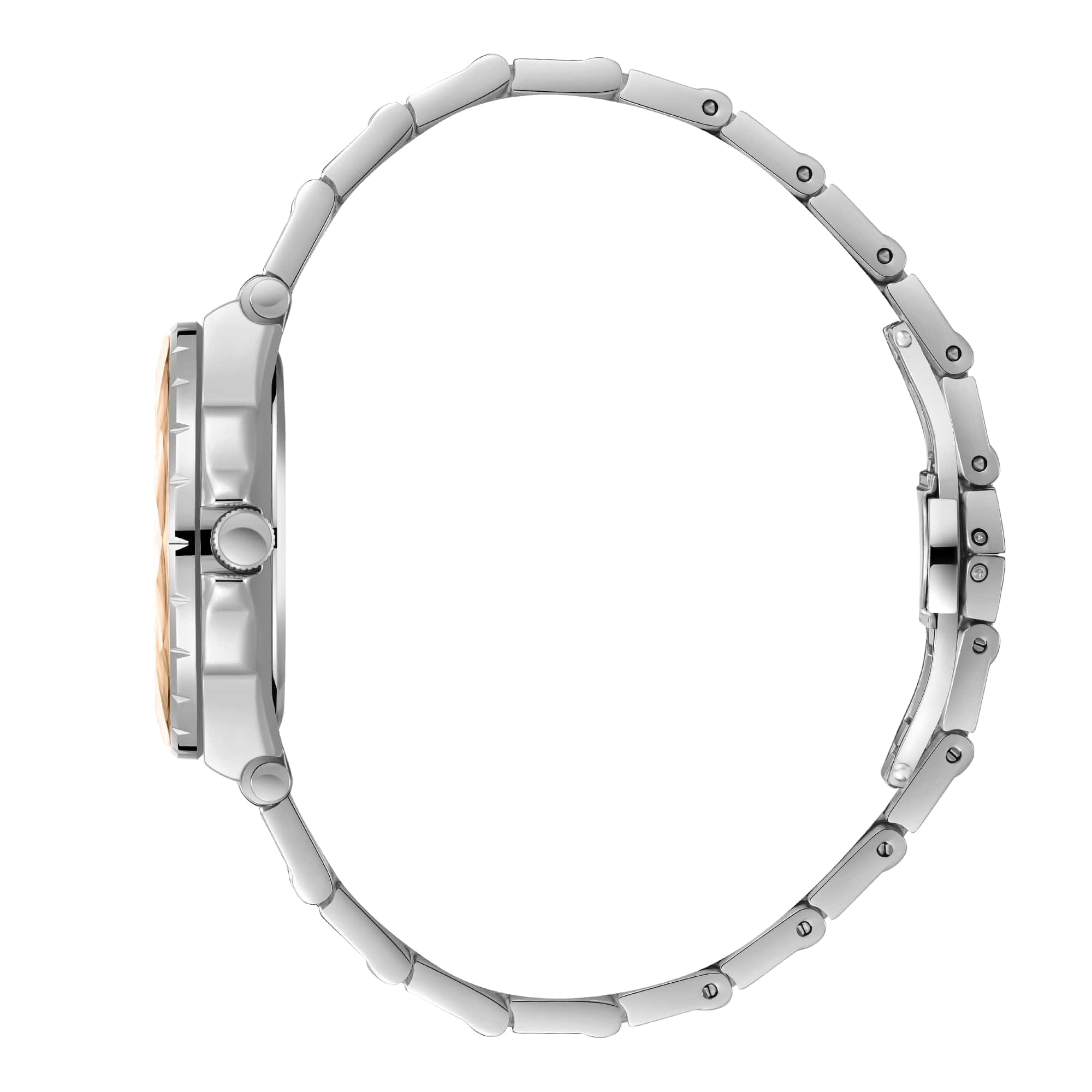 Стальной браслет с частичным IP-покрытиемIP-покрытиеМетод ионного напыления. Демонстрирует повышенную устойчивость к истиранию, окислению и химическим веществам. Под воздействием высокого давления и температуры около 1500°C молекулы металла надёжно соединяются с частицами корпуса часов. на застёжке-бабочке с кнопкамиЗастёжка "бабочка"Такой вид застёжки дополняется предохранителями, помогающими избежать случайного раскрытия браслета. Обладают изящным исполнением. . Часы обладают водозащитой до 30 метров, позволит защитить корпус от случайных брызг или капель дождя.