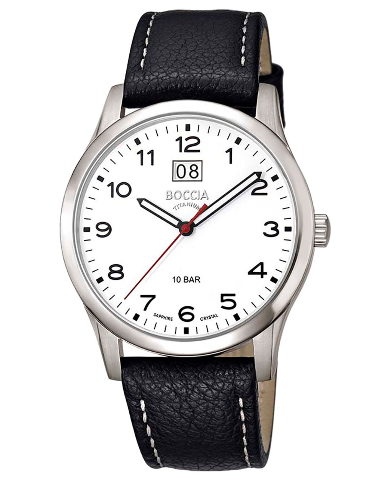 Мужские немецкие титановые часы Boccia Titanium Circle-Oval 3580-05, кварцевый механизм с высокой точностью. Сапфировое стеклоСапфировое стеклоПрочный и надёжный материал из кристалла сапфира синтетического происхождения, характеризующийся особой твёрдостью и устойчивостью к царапинам и повреждениям. устойчивое к появлению царапин, обладающее высокой прозрачностью. Корпус изготовлен из титана. Стрелки с люминесцентным покрытиемЛюминесцентное покрытиеПозволяет считывать показания времени в темноте. Производители наносят на стрелки, часовые индексы, безель или поверхность циферблата светонакопительный состав, дающий холодное свечение.. Окошко даты в положении 12 часов. Класс водозащиты: 100 метров, позволит плавать, нырять и заниматься другими водными видами спорта. Кожаный браслет на стандартной застежке.