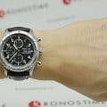 Класс водозащиты: 100 метров, позволит плавать, нырять и заниматься другими водными видами спорта. Корпус часов серебристого цвета, изготовлен из нержавеющей стали. Ремешок из телячьей кожи черного цвета с пряжкой из нержавеющей стали.