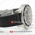 Класс водозащиты: 500 метров, позволит плавать, нырять и заниматься другими водными видами спорта. Корпус часов изготовлен из нержавеющей стали, серебристого цвета. Черный каучуковый ремешок с кнопочной застежкой.