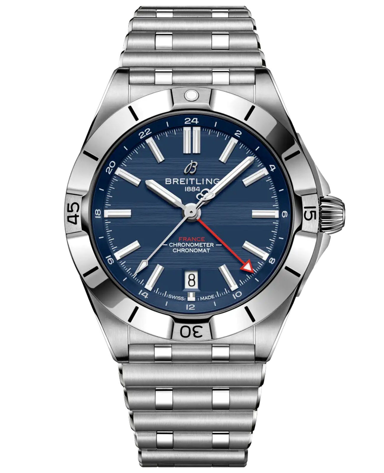 Мужские механические часы Breitling Chronomat A323989B1C1A1 — это роскошный аксессуар, сочетающий в себе классический стиль и передовые технологии. Модель выполнена из нержавеющей стали с диаметром корпуса 40 мм и толщиной 11,77 мм, что делает её прочной и устойчивой к царапинам. Циферблат синего цвета дополнен индикатором второго часового пояса, а его поверхность защищена выпуклым сапфировым стекломСапфировое стеклоПрочный и надёжный материал из кристалла сапфира синтетического происхождения, характеризующийся особой твёрдостью и устойчивостью к царапинам и повреждениям. с двусторонним антибликовым покрытиемАнтибликовое покрытиеСлой оксида металла в 0,13-0,3 микрон, благодаря которому стекло часов не бликует и не отражает свет. Антибликовое покрытие уменьшает отражение света в 10 раз, обеспечивая отличную читаемость показателей циферблата., устойчивым к повреждениям. Задняя крышка завинчивается, а заводная головка завинченная, с двумя прокладками, что обеспечивает надёжную фиксацию на запястье. Часы оснащены автоматическим механизмом Breitling Caliber 32, обеспечивающим запас хода до 42 часов и частоту колебаний 28 800 полуколебаний в час. Функции включают отображение времени и второй часовой пояс. Водонепроницаемость позволяет использовать модель при плавании и других водных активностях без глубокого погружения. Браслет из нержавеющей стали шириной 20 мм оснащён застёжкой «бабочка» с кнопкамиЗастёжка "бабочка"Такой вид застёжки дополняется предохранителями, помогающими избежать случайного раскрытия браслета. Обладают изящным исполнением. , обеспечивающей комфорт и надёжную фиксацию на запястье. На задней крышке выгравирован логотип команды, которой посвящена модель, и надпись «Один из 250». Это лимитированная серия, выпущенная всего 250 экземпляров, что подчёркивает её уникальность. Гарантия 2 года подтверждает качество и долговечность изделия. Эти часы станут универсальным аксессуаром для тех, кто ценит сочетание стиля, функциональности и надёжности — идеальный выбор для повседневной носки и активного образа жизни.