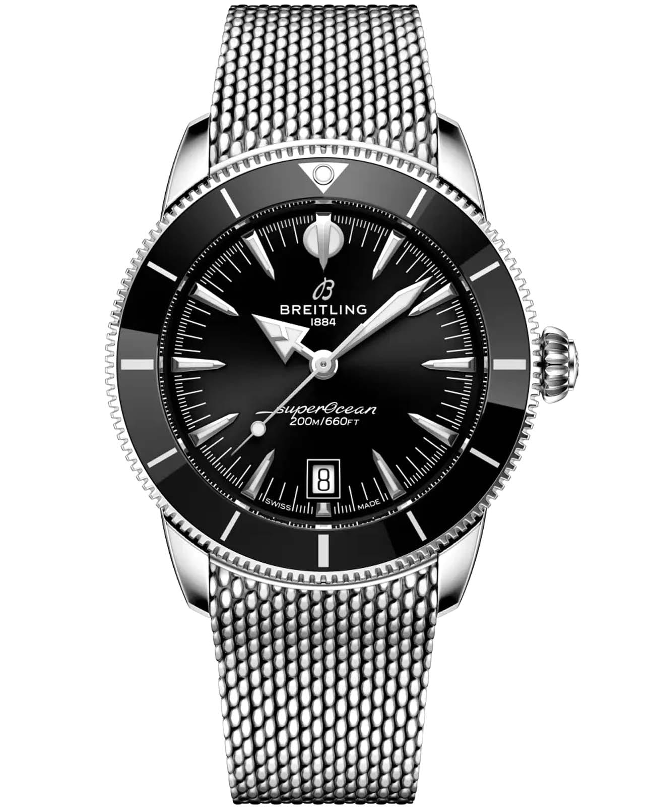 Мужские механические часы Breitling Superocean Heritage B31 Automatic 42 AB3111241B1A1 — это стильное сочетание элегантности и современного дизайна. Корпус из нержавеющей стали диаметром 42 мм, идеально сбалансирован и элегантен. Сапфировое стеклоСапфировое стеклоПрочный и надёжный материал из кристалла сапфира синтетического происхождения, характеризующийся особой твёрдостью и устойчивостью к царапинам и повреждениям. с антибликовым покрытием защищает циферблат от царапин и обеспечивает отличную читаемость при любом освещении. Стальной браслет на застёжке-бабочке с кнопкамиЗастёжка "бабочка"Такой вид застёжки дополняется предохранителями, помогающими избежать случайного раскрытия браслета. Обладают изящным исполнением. идеально дополняют дизайн часов, обеспечивая комфортное ношение. Стрелки и метки на циферблате имеют люминесцентное покрытиеЛюминесцентное покрытиеПозволяет считывать показания времени в темноте. Производители наносят на стрелки, часовые индексы, безель или поверхность циферблата светонакопительный состав, дающий холодное свечение. Super-LumiNova® позволяющее легко определять время даже в темноте. Вращающийся безельБезельВнешний ободок, закрепляющий стекло. В спортивных часах так называется поворотное кольцо с делениями на циферблате, выполняет роль таймера – замеряет отрезки времени на шкале. Неподвижный безель – элемент декора. Однонаправленно вращающийся безель на дайверских часах позволяет фиксировать моменты погружения и выныривания на поверхность. с керамической вставкой обеспечивает исключительную устойчивость к царапинам. Часы обладают впечатляющей водонепроницаемостью до 20 бар (200 метров), что делает их идеальными для плавания, ныряния и погружений с аквалангом. Окошко даты находится в положении 6 часов. Прочная конструкция часов и высокопроизводительный механизм делают их идеальным спутником для любителей активного отдыха. В коллекции представлен автоматический механизм B31, первый эксклюзивный калибр Breitling с тремя стрелками.