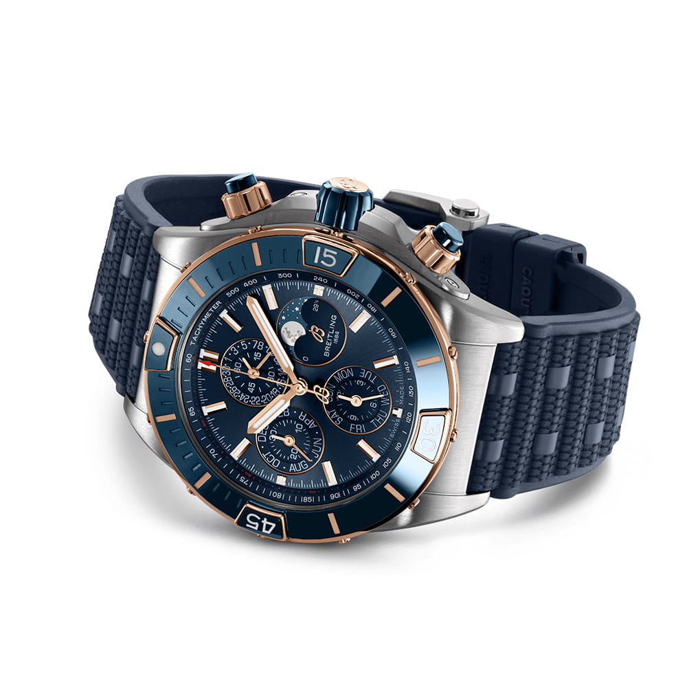 Образ завершают культовый каучуковый ремешок в стиле Rouleaux с раскладной застежкой. В корпусе часов Super Chronomat 44 Four-Year Calendar спрятан мануфактурный калибр Breitling 19, сертифицированный Швейцарским институтом официального тестирования хронометров (COSC). Модель оснащена механизмом календаря, который необходимо корректировать один раз в четыре года, или раз в 1461 день – каждый високосный год.