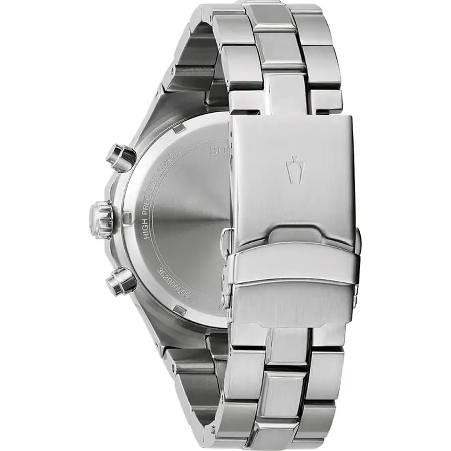 Мужские кварцевые часы-хронографХронографФункция позволяет измерять отрезки времени с особой точностью: часы, минуты, секунды. Верным признаком хронографа является наличие на циферблате 3 дополнительных окошек-счётчиков. Bulova Classic 96B408 – отражающий идеальное сочетание современного дизайна, надёжности и функциональности. Элегантный облик станет превосходным завершением образа, наделив его индивидуальным характером. Корпус из нержавеющей стали, диаметром 44 мм идеально сбалансирован и элегантен. Минеральное стеклоМинеральное стеклоМинеральное стекло представляет собой искусственно выращенный минерал кварца. Такое стекло отличается особой устойчивостью к повреждениям и царапинам. Уступает по некоторым качествам сапфировому стеклу. защищает циферблат от царапин и устойчивое к мелким механическим повреждениям. Шкала тахиметраТахиметрРазмеченная шкала, располагается на ободке или безеле часов. Тахиметр позволяет рассчитать скорость на определённом участке пути, расстояние измеряется в километрах или милях. на циферблате. Стальной браслет на раскладной застёжкеРаскладная застёжкаТакой тип застёжки используется только на браслетах из металла. Она никогда не раскрывается полностью, происходит разделение на 2 и более частей. Раскладывающая застёжка снизит вероятность потери часов к минимуму. обеспечивает комфортное ношение. Стрелки и метки с люминесцентным покрытиемЛюминесцентное покрытиеПозволяет считывать показания времени в темноте. Производители наносят на стрелки, часовые индексы, безель или поверхность циферблата светонакопительный состав, дающий холодное свечение. позволяющие легко определять время даже в темноте. Водозащита 100 метров, позволит плавать, нырять и заниматься другими водными видами спорта. Окошко даты находится в положении между 4 и 5 часов. Эта модель – отличный выбор для тех, кто ищет сочетание стиля, качества и функциональности. Часы станут не только полезным аксессуаром, но и выразительным элементом вашего имиджа.