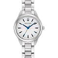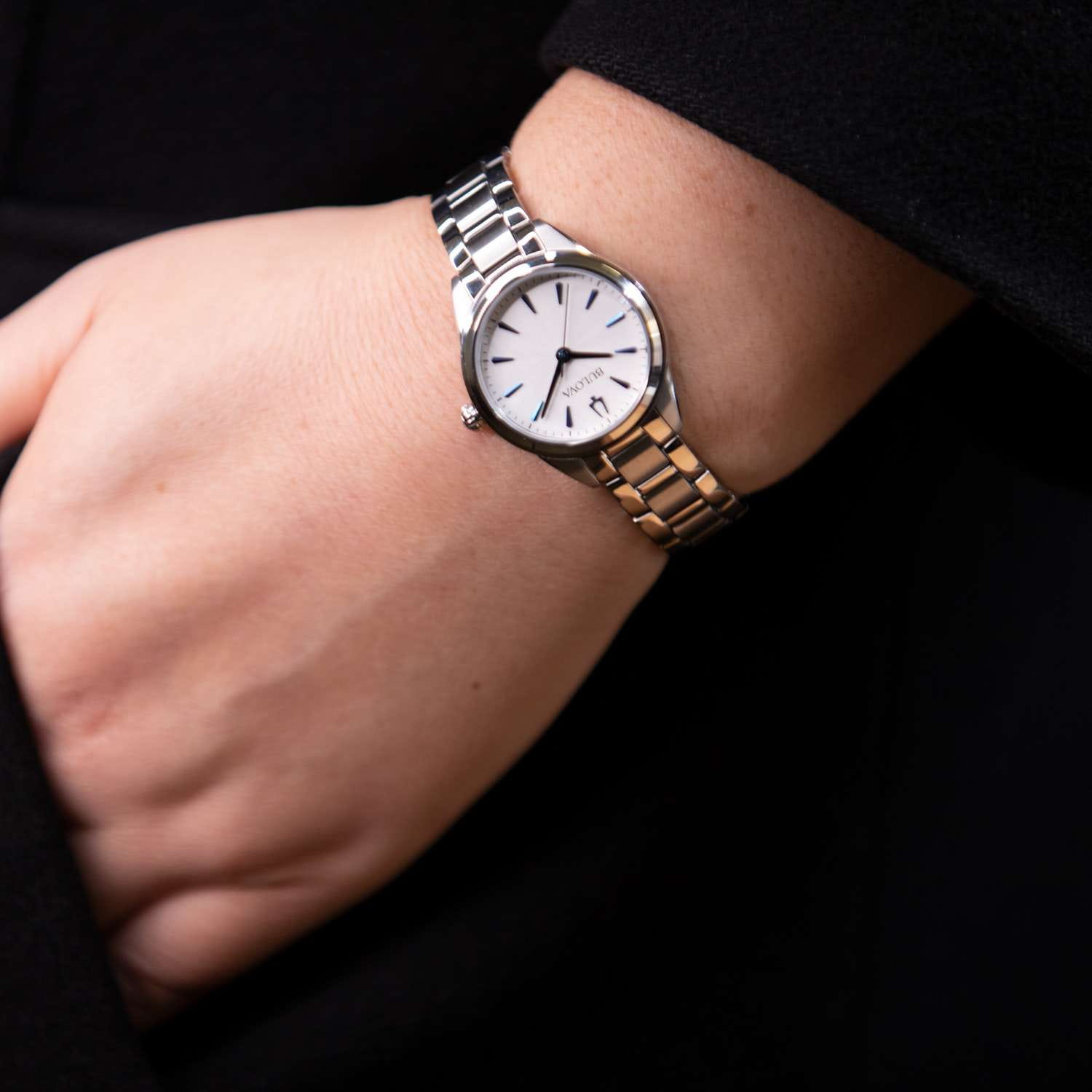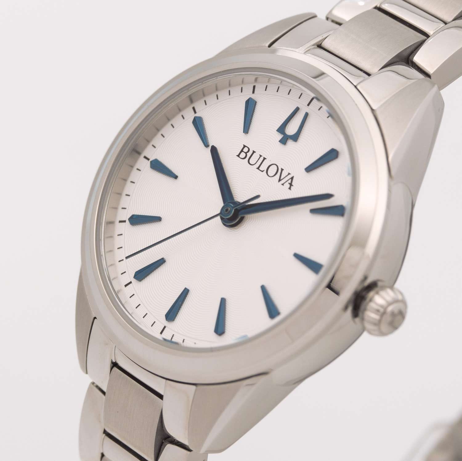 Женские кварцевые часы Bulova Sutton 96L285 – отражающий идеальное сочетание современного дизайна, надёжности и функциональности. Элегантный облик станет превосходным завершением образа, наделив его индивидуальным характером. Корпус из нержавеющей стали серебристого цвета, диаметром 28 мм идеально сбалансирован и элегантен. Минеральное стеклоМинеральное стеклоМинеральное стекло представляет собой искусственно выращенный минерал кварца. Такое стекло отличается особой устойчивостью к повреждениям и царапинам. Уступает по некоторым качествам сапфировому стеклу. защищает циферблат от царапин и устойчивое к мелким механическим повреждениям. Стальной браслет на раскладной застёжкеРаскладная застёжкаТакой тип застёжки используется только на браслетах из металла. Она никогда не раскрывается полностью, происходит разделение на 2 и более частей. Раскладывающая застёжка снизит вероятность потери часов к минимуму. обеспечивает комфортное ношение. Водозащита 30 метров позволит защитить корпус от случайных брызг или капель дождя. Эта модель – отличный выбор для тех, кто ищет сочетание стиля, качества и функциональности. Часы станут не только полезным аксессуаром, но и выразительным элементом вашего имиджа.