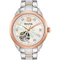 Женские механические часы с автоподзаводом Bulova Automatic Ladies 98P170 – отражающий идеальное сочетание современного дизайна, надёжности и функциональности. Элегантный облик станет превосходным завершением образа, наделив его индивидуальным характером. Корпус из нержавеющей стали с неподвижным безелемБезельВнешний ободок, закрепляющий стекло. В спортивных часах так называется поворотное кольцо с делениями на циферблате, выполняет роль таймера – замеряет отрезки времени на шкале. Неподвижный безель – элемент декора. Однонаправленно вращающийся безель на дайверских часах позволяет фиксировать моменты погружения и выныривания на поверхность. с IP-покрытиемIP-покрытиеМетод ионного напыления. Демонстрирует повышенную устойчивость к истиранию, окислению и химическим веществам. Под воздействием высокого давления и температуры около 1500°C молекулы металла надёжно соединяются с частицами корпуса часов. золотистого цвета, диаметром 34 мм идеально сбалансирован и элегантен. Защиту циферблата обеспечивает прочное сапфировое стеклоСапфировое стеклоПрочный и надёжный материал из кристалла сапфира синтетического происхождения, характеризующийся особой твёрдостью и устойчивостью к царапинам и повреждениям., гарантирующее четкость показаний. Циферблат из белого перламутра украшен золотистыми стрелками и бриллиантами, а также апертуром, открывающим вид на автоматический механизм. Браслет из нержавеющей стали с частичным IP-покрытиемIP-покрытиеМетод ионного напыления. Демонстрирует повышенную устойчивость к истиранию, окислению и химическим веществам. Под воздействием высокого давления и температуры около 1500°C молекулы металла надёжно соединяются с частицами корпуса часов. на застёжке-бабочке с кнопкамиЗастёжка "бабочка"Такой вид застёжки дополняется предохранителями, помогающими избежать случайного раскрытия браслета. Обладают изящным исполнением. обеспечивает комфортное ношение. Водозащита 30 метров позволит защитить корпус от случайных брызг или капель дождя. Эта модель – отличный выбор для тех, кто ищет сочетание стиля, качества и функциональности. Часы станут не только полезным аксессуаром, но и выразительным элементом вашего имиджа.