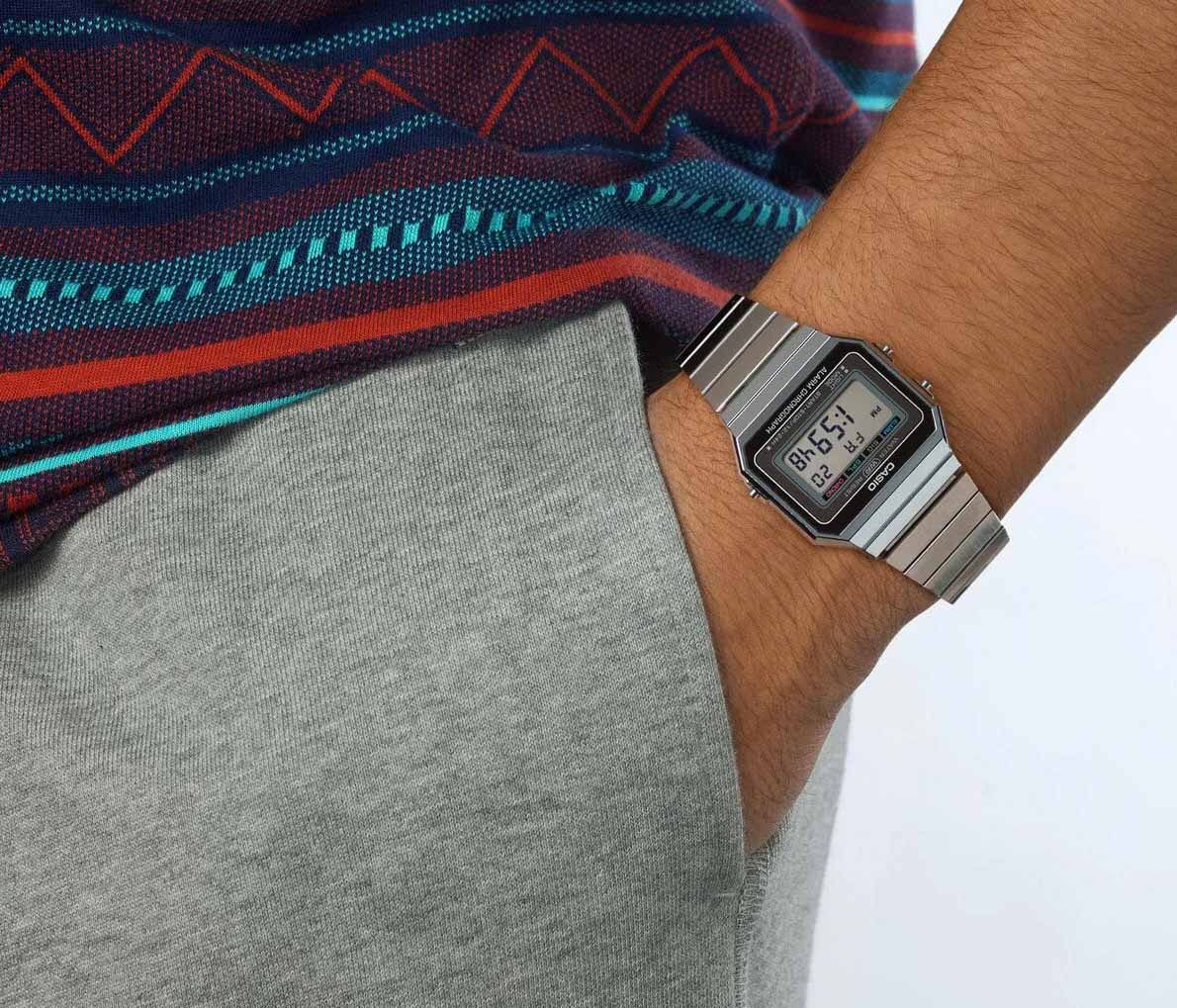 Японские мужские часы c хронографомХронографФункция позволяет измерять отрезки времени с особой точностью: часы, минуты, секунды. Верным признаком хронографа является наличие на циферблате 3 дополнительных окошек-счётчиков. Casio Collection A700WE-1A, кварцевый механизм с высокой точностью. Класс водозащиты: 30 метров, позволит защитить корпус от случайных брызг или капель дождя. Корпус часов изготовлен из пластика. Стальной браслет на раскладной застёжкеРаскладная застёжкаТакой тип застёжки используется только на браслетах из металла. Она никогда не раскрывается полностью, происходит разделение на 2 и более частей. Раскладывающая застёжка снизит вероятность потери часов к минимуму.. Для подсветки дисплея используется маленький светодиодСветодиодная подсветкаСветодиодная или LED-подсветка обеспечивает появление яркого холодного свечения за счёт LED-элементов - маленьких лампочек. Они потребляют минимальное количество энергии, чаще всего можно встретить 1 светодиод, в нижней части циферблата. в левой части дисплея. После первичной настройки автоматический вечный календарьВечный календарьКлассическое часовое усложнение, представляющее собой календарь, рассчитанный на несколько лет вперёд (стандартно – до 2099 года). Определяет текущую дату, день недели, месяц. всегда отображает точную дату.