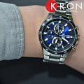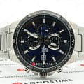 Ярко-синий циферблат стильно смотрится в сочетании с контрастными элементами оформления. Кварцевый хронографХронографФункция позволяет измерять отрезки времени с особой точностью: часы, минуты, секунды. Верным признаком хронографа является наличие на циферблате 3 дополнительных окошек-счётчиков. имеет крупную индикацию времени, что позволяет без проблем считывать информацию даже при беглом взгляде на запястье. Ударопрочный корпусУдаропрочный корпусМеханизм заключён в корпус, выполненный из современных материалов, устойчивых к ударам, механическим повреждениям и падению с высоты: инновационный пластик, карбон, нержавеющая сталь, титан. и браслет выполнены из нержавеющей стали 316L, отличающейся долговечностью. Кварцевый механизм с точностью хода +/- 30 секунд в месяц. Срок службы батарейки - 2 года. Закручивающаяся задняя крышка. Люминесцентная подсветка NeobriteЛюминесцентное покрытиеПозволяет считывать показания времени в темноте. Производители наносят на стрелки, часовые индексы, безель или поверхность циферблата светонакопительный состав, дающий холодное свечение.. Водонепроницаемость до 10 бар. БезельБезельВнешний ободок, закрепляющий стекло. В спортивных часах так называется поворотное кольцо с делениями на циферблате, выполняет роль таймера – замеряет отрезки времени на шкале. Неподвижный безель – элемент декора. Однонаправленно вращающийся безель на дайверских часах позволяет фиксировать моменты погружения и выныривания на поверхность. с чёрным IP-покрытиемIP-покрытиеМетод ионного напыления. Демонстрирует повышенную устойчивость к истиранию, окислению и химическим веществам. Под воздействием высокого давления и температуры около 1500°C молекулы металла надёжно соединяются с частицами корпуса часов.. Минеральное стекло. Секундомер, отображение даты. Габариты: 43,4 x 48,1 x 11,4 мм.