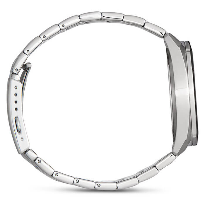 Лаконичный чёрный циферблат с оригинальным узором счётчиков имеет яркие синие акценты в виде секундной стрелки и элементе миниатюрного окошка на позиции 9 часов. Крупные стрелки обладают люминесцентным покрытиемЛюминесцентное покрытиеПозволяет считывать показания времени в темноте. Производители наносят на стрелки, часовые индексы, безель или поверхность циферблата светонакопительный состав, дающий холодное свечение., позволяющим без затруднений использовать часы в темноте. Браслет из нержавеющей стали 316L надёжно обхватывает запястье, долговечный материал устойчив к ударам и повреждениям. Минеральное стекло. Отображение текущего числа. Габариты: 50,6 x 44 x 11,2 мм.