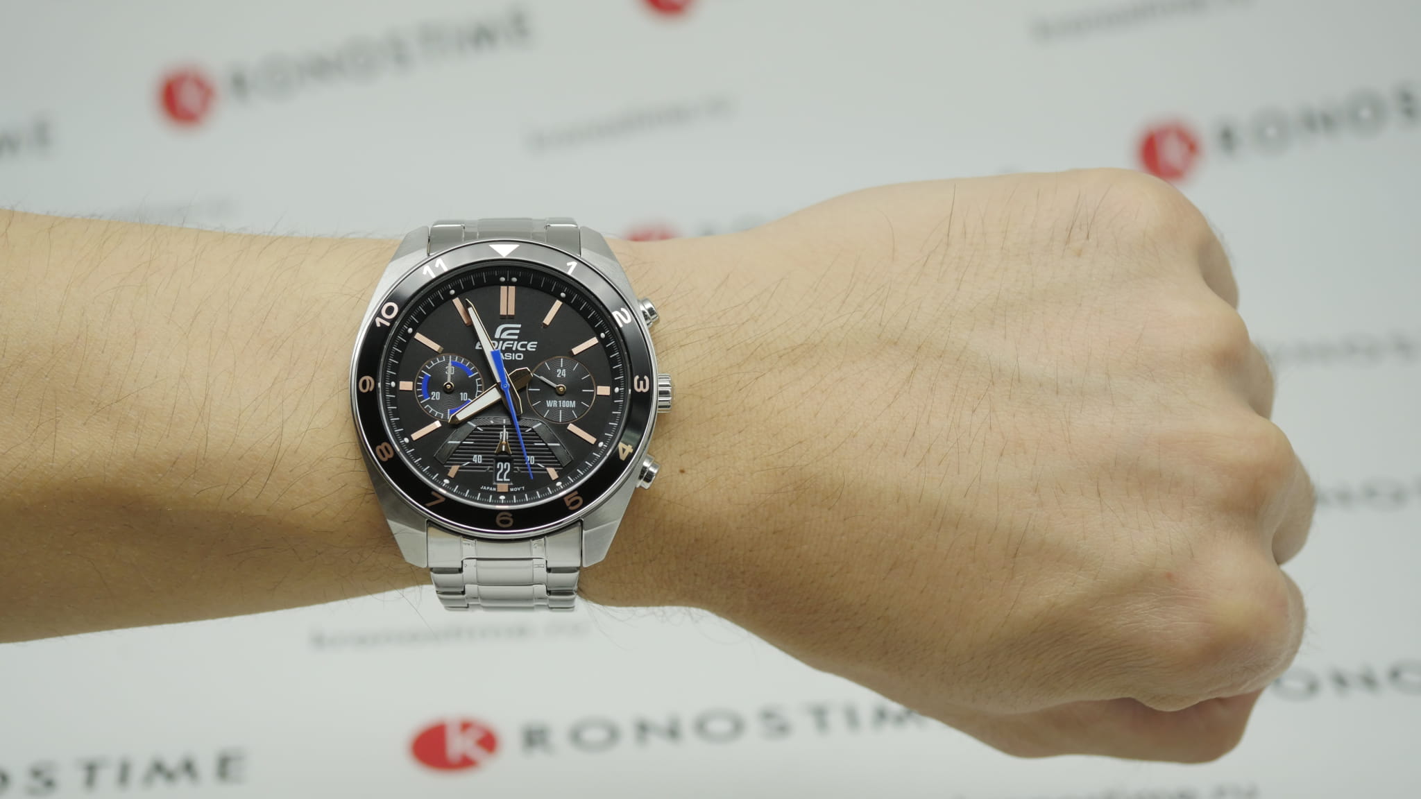 Модель из коллекции Edifice представляет собой стильный спортивный хронографХронографФункция позволяет измерять отрезки времени с особой точностью: часы, минуты, секунды. Верным признаком хронографа является наличие на циферблате 3 дополнительных окошек-счётчиков., который станет идеальным дополнением к деловому, спортивному, повседневному стилю.