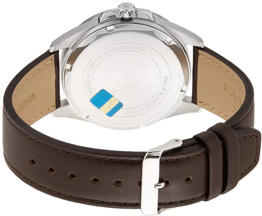 Стильный мужские наручные часы Casio Edifice надежные и практичные. Эффектный дизайн циферблата, стилизован под скелетоны. Точный кварцевый механизм Miyota (Япония).Точность хода: не хуже +/-20 секунд в месяц. Минеральное стекло, устойчивое к возникновению царапин. Корпус выполнен из высококачественного стального сплава 316L с высокими антикоррозийными свойствами. Ремешок из натуральной кожи коричневого цвета. Заводная головка с защитой. Выступы на корпусе защищают переводную коронку от негативного воздействия. Стрелочные указатели даты и дня недели. Стрелочный указатель 12/24 - х часового пояса. Водонепроницаемость (10 Бар).  Идеально подходит для плавания с маской и трубкой.