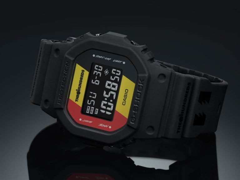 Компания Casio совместно с брендом уличной одежды The Hundreds в честь 35-летнего юбилея G-SHOCK представляет специальный дизайн легендарной модели DW5600 Часы выполнены в матовом черном цвете с фирменным логотипом бренда The Hundreds - “Wildfire” на циферблате На ремешке написан этос бренда - “Blood Sweat & Years” Часы поставляются в коллекционном коробе, выполненном в стиле бренда