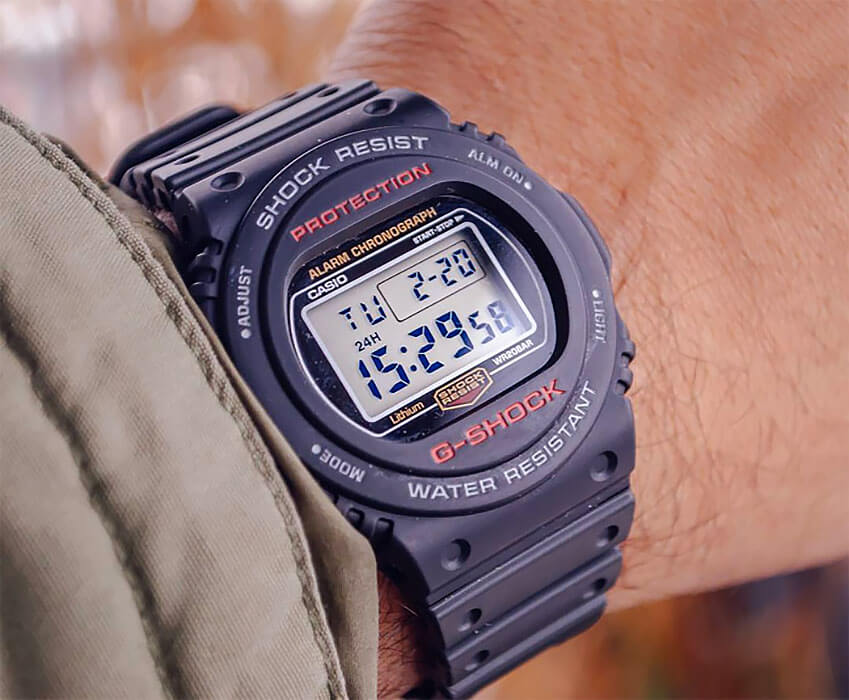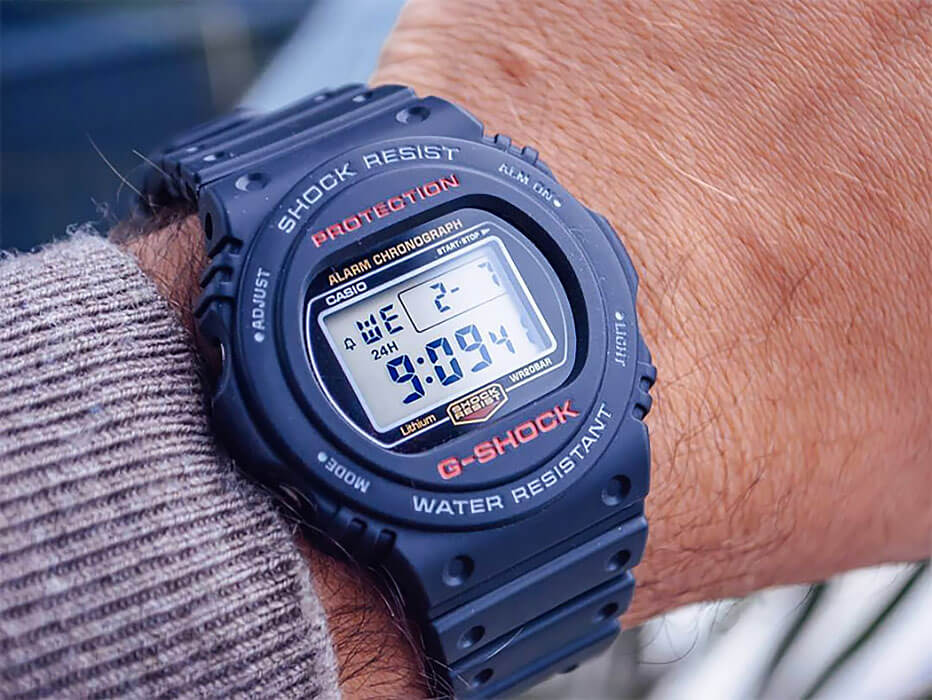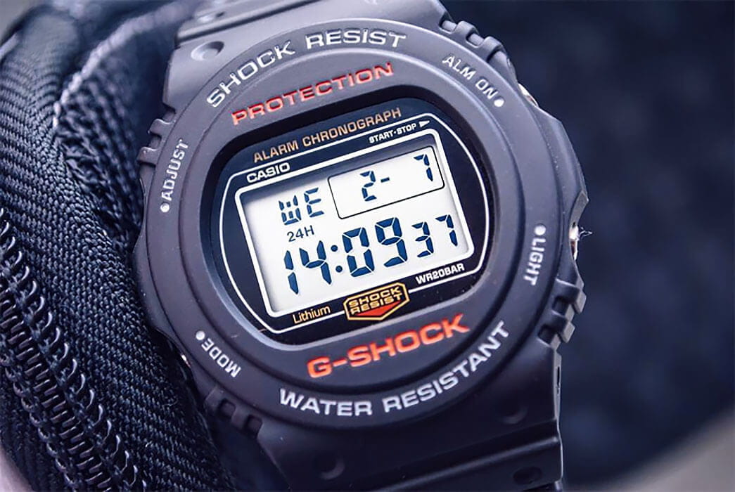 Японские мужские часы DW-5750UE-1 из брутальной серии G-Shock, прототипом для которых стала легендарная модель 1987 года.