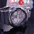 За счёт тёмного сдержанного исполнения модель подходит к любой одежде, позволяя экспериментировать со стилями. Оригинально смотрится циферблат с золотистыми элементами оформления, отличительной чертой серии стали три функциональных окошка "Three-eye" в верхней части и перфорированные контрастные стрелки. Противоударный корпусУдаропрочный корпусМеханизм заключён в корпус, выполненный из современных материалов, устойчивых к ударам, механическим повреждениям и падению с высоты: инновационный пластик, карбон, нержавеющая сталь, титан. и браслет изготовлены из полимерного материала, устойчивого к ударам, повреждениям и вибрации. Кварцевый японский механизм с точностью хода +/- 15 секунд в месяц. Аккумулятор рассчитан на 2-летнее использование. Прочное минеральное стекло. Циферблат с автоматической светодиодной подсветкойСветодиодная подсветкаСветодиодная или LED-подсветка обеспечивает появление яркого холодного свечения за счёт LED-элементов - маленьких лампочек. Они потребляют минимальное количество энергии, чаще всего можно встретить 1 светодиод, в нижней части циферблата.. Водонепроницаемость 200 метров. Минимизация воздействия магнитного поля. ХронографХронографФункция позволяет измерять отрезки времени с особой точностью: часы, минуты, секунды. Верным признаком хронографа является наличие на циферблате 3 дополнительных окошек-счётчиков., автоматический календарь, отображение средней скорости пройденной дистанции, секундомер, мировое времяМировое время Полезное часовое усложнение, отображающее время в основных городах и известных областях по всему миру, оно связано с часовыми поясами, удобно для путешественников и бизнесменов. , таймер с автоповтором, будильник. Габариты: 55 x 51,2 x 16,9 мм.