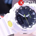 Белая модель с жёлтыми деталями точно станет запоминающейся деталью вашего образа. Часы получили обновлённый дизайн и уменьшенный противоударный корпусУдаропрочный корпусМеханизм заключён в корпус, выполненный из современных материалов, устойчивых к ударам, механическим повреждениям и падению с высоты: инновационный пластик, карбон, нержавеющая сталь, титан., если сравнивать с моделями серии GA-700. Он выполнен из полимерного пластика, что гарантирует повышенную устойчивость к ударам, повреждениям, падению с высоты. Японский кварцевый калибр с точностью хода +/- 15 секунд в месяц. Срок службы батарейки - 3 года. Функция выключения и включения звука кнопок. Стрелки с люминесцентным покрытиемЛюминесцентное покрытиеПозволяет считывать показания времени в темноте. Производители наносят на стрелки, часовые индексы, безель или поверхность циферблата светонакопительный состав, дающий холодное свечение.. Двойная светодиодная подсветкаСветодиодная подсветкаСветодиодная или LED-подсветка обеспечивает появление яркого холодного свечения за счёт LED-элементов - маленьких лампочек. Они потребляют минимальное количество энергии, чаще всего можно встретить 1 светодиод, в нижней части циферблата.. Водозащита 20 бар. Минеральное стекло. Полимерный браслет. Секундомер, таймер обратного отсчёта, мировое времяМировое время Полезное часовое усложнение, отображающее время в основных городах и известных областях по всему миру, оно связано с часовыми поясами, удобно для путешественников и бизнесменов. , 5 ежедневных будильников, автоматический календарь. Габариты: 54,1 x 48,6 x 15,5 мм.