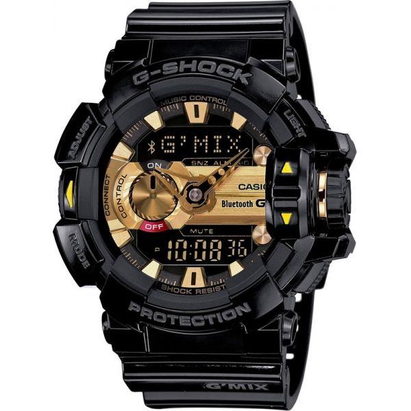 G-Shock Bluetooth G'MIX. Циферблат подсвечивается ярким светодиодом. Ударопрочная конструкция защищает механизм от ударов и вибрации. Индикатор низкого заряда батареи. Синхронизация с iPhone 4s, 5, 5c, 5s, 6, 6 Plus, Samsung Galaxy Note 3, Samsung Galaxy S4, S5 и др. Уведомление о входящих вызовах и сообщениях электронной почты звуковым сигналом или вибрацией. Автоматическая регулировка времени в соответствии с настройками смартфона. Управление воспроизведением музыкальных композиций в приложении G’MIX. Регулировка эффектов звучания музыки. Определение названия и исполнителя музыки, благодаря сервису SoundHound.