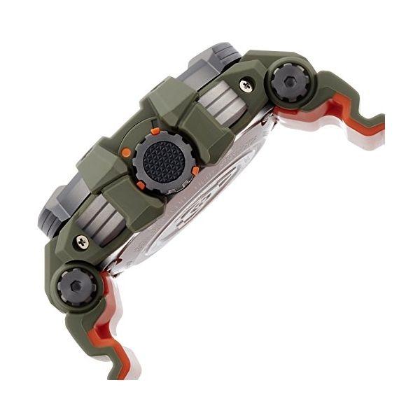 Перед вами модель из флагманской серии G-SHOCK GPW в милитаристическом дизайне цвета хаки, черным стальным безелем и яркими оранжевыми деталями — это первые в мире часы с GPS- и радио-синхронизацией времени с атомными часами в разных частях света.