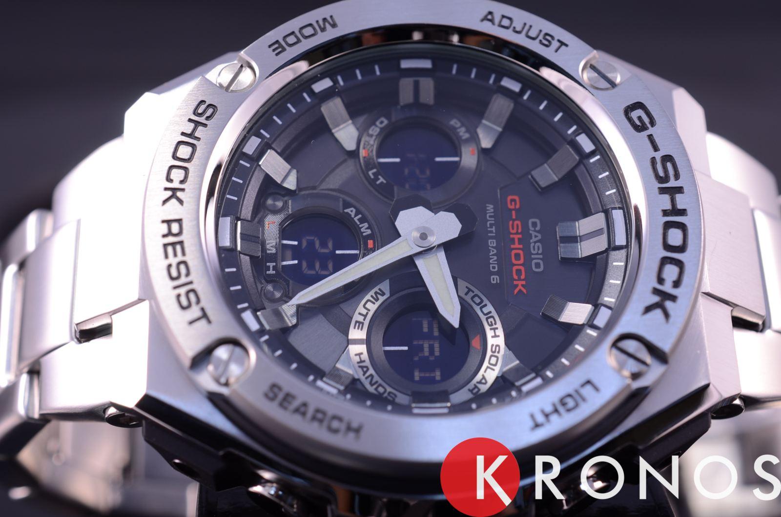 Лаконичный дизайн напоминает о классическом облике механических часов, серебристый блеск нержавеющей стали 316L никогда не потеряет актуальности. Противоударный корпусУдаропрочный корпусМеханизм заключён в корпус, выполненный из современных материалов, устойчивых к ударам, механическим повреждениям и падению с высоты: инновационный пластик, карбон, нержавеющая сталь, титан. с лёгкостью выдерживает любые нагрузки и падения с высоты, дополнительную устойчивость к повреждениям придаёт полимерная составляющая. Модель серии G-Steel - это часы на солнечной батарее , есть индикатор заряда аккумулятора. Минеральное стекло. Циферблат со светодиодной подсветкойСветодиодная подсветкаСветодиодная или LED-подсветка обеспечивает появление яркого холодного свечения за счёт LED-элементов - маленьких лампочек. Они потребляют минимальное количество энергии, чаще всего можно встретить 1 светодиод, в нижней части циферблата.. Приём радиосигнала. Таймер, секундомер, мировое времяМировое время Полезное часовое усложнение, отображающее время в основных городах и известных областях по всему миру, оно связано с часовыми поясами, удобно для путешественников и бизнесменов. , будильник, UTCUTCВсемирное кординационное время, не имеющее привязки к географическому положению Гринвича, основывается на атомном отсчёте времени. Регулировка времени осуществляется более точно, чем устаревшее GMT.