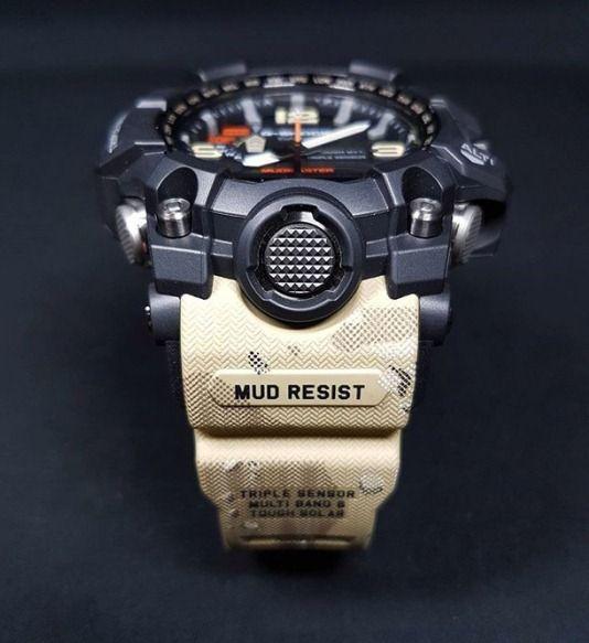 Ударопрочные мужские часы из коллекции Master of G выполнены в стиле миллитари. Исполнение премиум-класса, грязеустойчивые, с водонепроницаемостью в 20 атмосфер. Кварцевые часы с аналоговым и цифровым способами отображения времени, и с корпусом, выполненым из пластика и высокопрочной стали. Синий циферблат защищает надежное сапфировое стекло. Браслет темно-зеленого из прочного пластика. Вес часов 119 грамм. Часы Casio GWG-1000-1A9 оснащены множеством дополнительных функций: компас, термометр, таймер обратного отсчета, барометр, высотомер, секундомер, индикатор запаса хода, подсветкой стрелок и дисплея. Заряжаются часы от солнечной батареи, в режиме сохранения энергии сохраняют работоспособность без подзарядки в течении 25 месяцев.