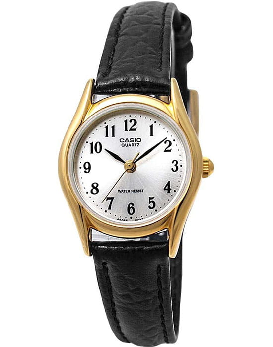 Яркий, переливающийся на свету золотой корпус данной модели сделан из латуни. Его гладкие края красиво обрамляют круглый циферблат золотистого цвета. Для удобства прочтения арабские цифры выдержаны в черном цвете, и поэтому моментальное определение времени не составит труда. Удобный, черный ремень сделан из кожи и привлекательно контрастирует вместе с корпусом. Классическая, и одновременно прочная модель наручных часов от Casio послужит своей обладательнице долгие годы.