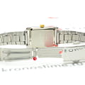 Необычный дизайн аксессуара сочетает в себе серебристый и золотой цвета. Прямоугольный, серебристый корпус сделан из прочной латуни. Минерально, стойкое к царапинам стекло прочно вставлено в корпус. Стальной, двухцветный браслет содержит в себе надежную, раскладывающуюся застежку, которая предотвращает потерю часов. На циферблате расположены отчетливые арабские цифры и штрихи. Кварцевый механизм.