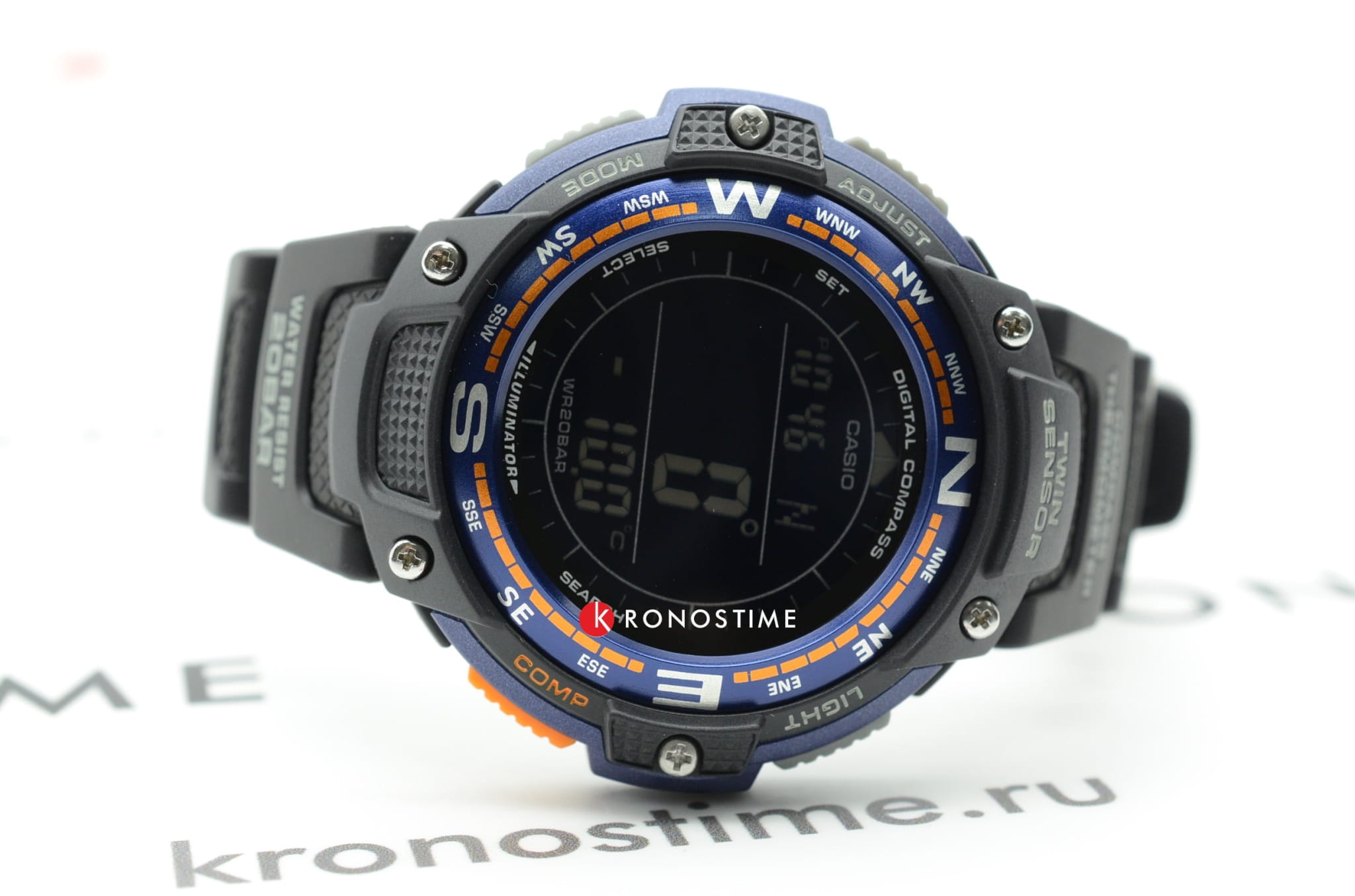 Корпус и браслет многофункциональных и стильных часов от Casio выполнены из высокопрочных полимерных материалов. Есть функции для определения погоды. Часы способны выдержать температуру даже ниже, чем -10 °C. Секундомер измеряет прошедшее время с точностью в 1/100 секунды. Быть максимально пунктуальными помогут 5 независимых будильников. Встроен цифровой компас. Электролюминесцентная подсветкаЭлектролюминесцентная подсветкаЭлектролюминесцентная панель устанавливается под ЖК-экраном часов, при нажатии кнопки электричество преобразуется в свет за счёт подачи напряжения на атомы фосфора, такой тип подсветки позволяет освещать весь циферблат. обеспечивает видимость информации в темноте. Высокая водонепроницаемость в 200 WR.