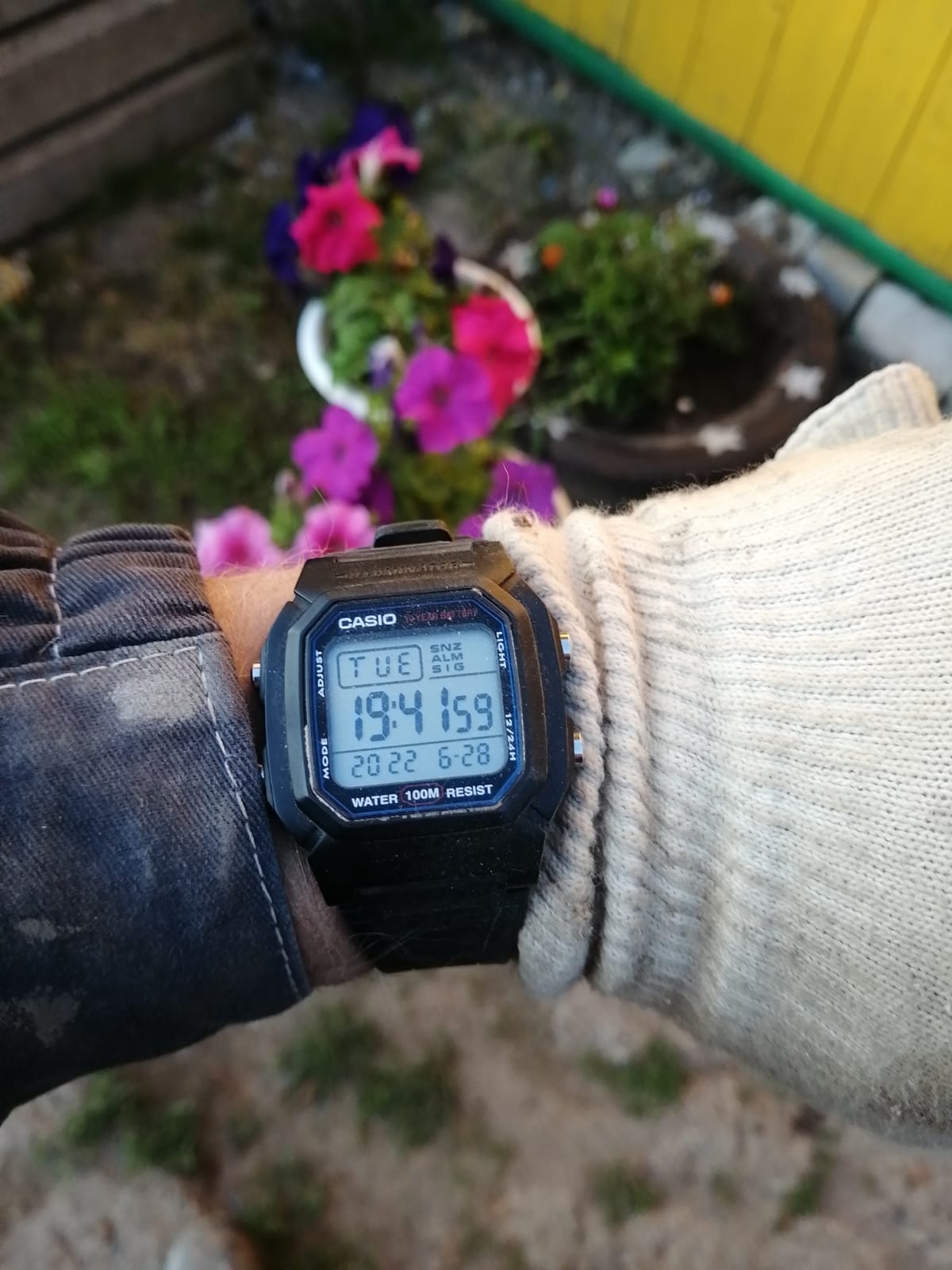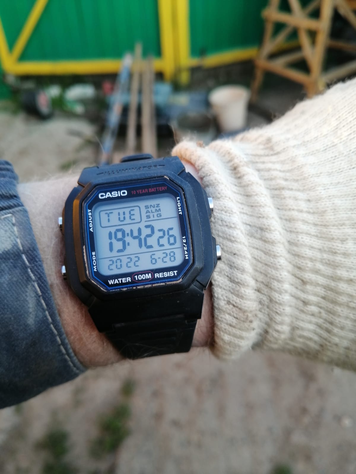 На Новый Год подарили дорогие механические часы, но мне проходиться постоянно их снимать чтобы не повредить. Я работаю строителем. Выбирая себе новые часы увидел "свои" нынешние и решил написать про свой опыт. Вообще пользуюсь электронными часами такого типа более 20 лет. Эти пока самые долгоиграющие, учитывая жесткие условия их эксплуатации. Ношу их уже 4,5 года не снимая: и моюсь и купаюсь и работаю в них, колю дрова, пилю, сверлю, варю, выполняю строительные работы и т. п. Да, ремешки меняю где-то раз в год, но сами часы работют как прежде.Сейчас они пообтерлись и две кнопки стали тугими, наверное от грязи, но чистить мне лень. Ищу пожожие и недорогие.