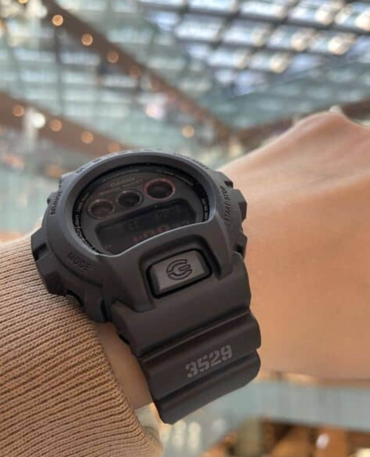 Японские мужские часы Casio G-Shock DW-6900UMS-1DR. В дизайне модели прослеживается визуальная эстетика 90-х годов, что добавляет ей особого шарма в глазах тех, кто помнит первые кассетные плееры SONY и двухкассетники SHARP. Ударопрочный корпусУдаропрочный корпусМеханизм заключён в корпус, выполненный из современных материалов, устойчивых к ударам, механическим повреждениям и падению с высоты: инновационный пластик, карбон, нержавеющая сталь, титан. из полимерного материала защищает механизм от ударов и вибрации. Минеральное стеклоМинеральное стеклоМинеральное стекло представляет собой искусственно выращенный минерал кварца. Такое стекло отличается особой устойчивостью к повреждениям и царапинам. Уступает по некоторым качествам сапфировому стеклу. устойчивое к появлению царапин, обладающее высокой прозрачностью. Светодиодная подсветкаСветодиодная подсветкаСветодиодная или LED-подсветка обеспечивает появление яркого холодного свечения за счёт LED-элементов - маленьких лампочек. Они потребляют минимальное количество энергии, чаще всего можно встретить 1 светодиод, в нижней части циферблата., послесвечение. 12/24-часовой формат. вечный календарьВечный календарьКлассическое часовое усложнение, представляющее собой календарь, рассчитанный на несколько лет вперёд (стандартно – до 2099 года). Определяет текущую дату, день недели, месяц.. СекундомерСекундомерСекундоме́р — прибор, способный измерять интервалы времени с точностью до долей секунды.. ТаймерТаймерОтсчитывает секунды в обратном направлении в заданном интервале времени.. Часовой сигнал времени. Многофункциональный будильник. Класс водозащиты: 200 метров, позволит плавать, нырять и заниматься другими водными видами спорта. Ремешок из полимерного материала на стандартной застежке.