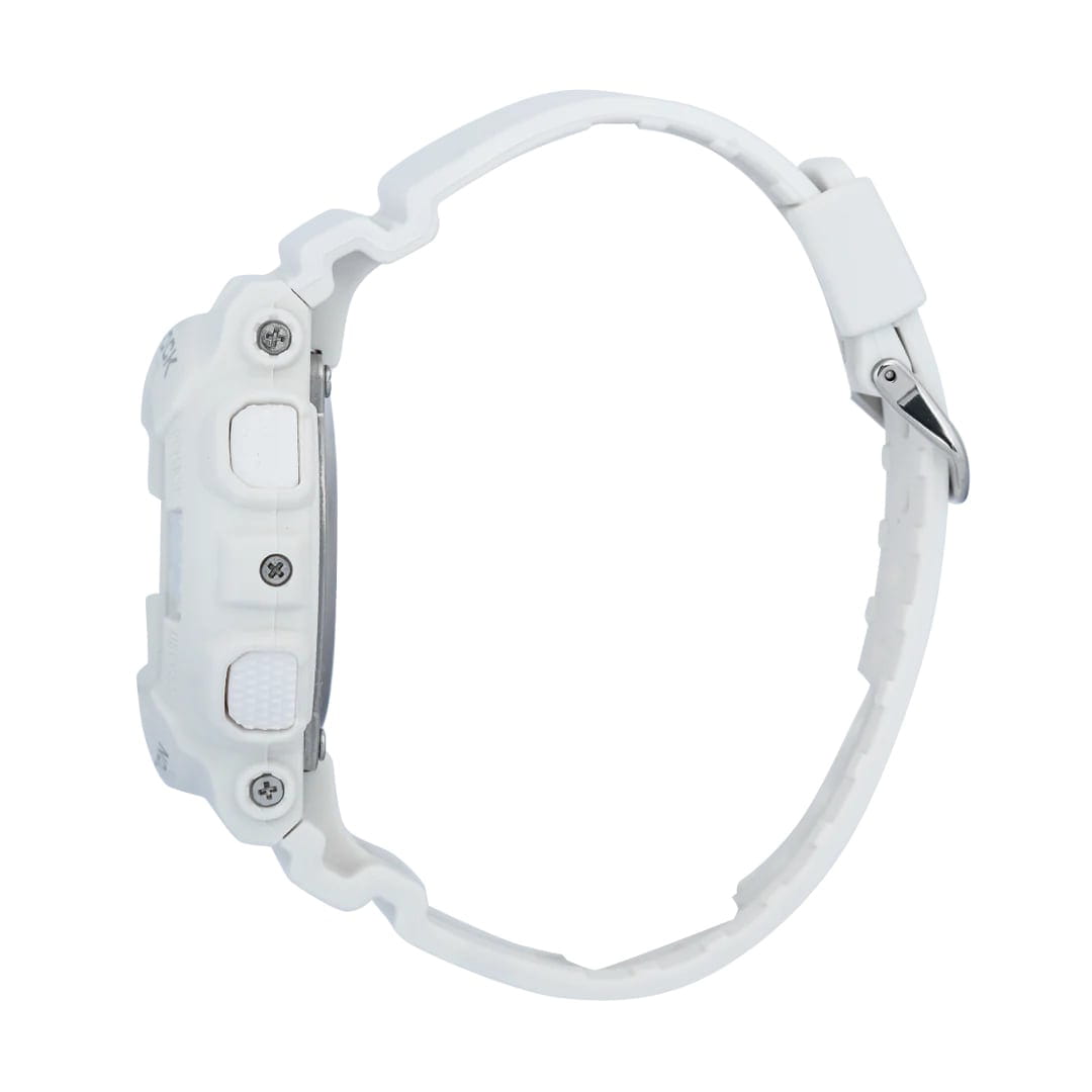 Японские женские часы GMA-S120VA-7A из коллекции G-Shock представлены в спортивном облачении. Кварцевые часы. Аналогово-цифровой циферблат. Наручные часы с противоударным корпусомУдаропрочный корпусМеханизм заключён в корпус, выполненный из современных материалов, устойчивых к ударам, механическим повреждениям и падению с высоты: инновационный пластик, карбон, нержавеющая сталь, титан. выполнены из полимерного материала, легко поглощающего силу удара и вибрации, что делает их надёжным и долговечным аксессуаром. Кварцевый механизм японского производства. Батарейка рассчитана на 3 года службы. Стрелки со светодиодной подсветкойСветодиодная подсветкаСветодиодная или LED-подсветка обеспечивает появление яркого холодного свечения за счёт LED-элементов - маленьких лампочек. Они потребляют минимальное количество энергии, чаще всего можно встретить 1 светодиод, в нижней части циферблата.. Минеральное стеклоМинеральное стеклоМинеральное стекло представляет собой искусственно выращенный минерал кварца. Такое стекло отличается особой устойчивостью к повреждениям и царапинам. Уступает по некоторым качествам сапфировому стеклу.. Защита от магнитных полей. Водонепроницаемость 200 метров, позволит плавать, нырять и заниматься другими водными видами спорта. Функциональные возможности: мировое времяМировое время Полезное часовое усложнение, отображающее время в основных городах и известных областях по всему миру, оно связано с часовыми поясами, удобно для путешественников и бизнесменов. , таймерТаймерОтсчитывает секунды в обратном направлении в заданном интервале времени. обратного отсчёта, будильникБудильникБуди́льник — часы, в заданный момент времени подающие звуковой, световой и/или в редких случаях другой сигнал., хронографХронографФункция позволяет измерять отрезки времени с особой точностью: часы, минуты, секунды. Верным признаком хронографа является наличие на циферблате 3 дополнительных окошек-счётчиков., автоматический календарь до 2099 года, UTCUTCВсемирное кординационное время, не имеющее привязки к географическому положению Гринвича, основывается на атомном отсчёте времени. Регулировка времени осуществляется более точно, чем устаревшее GMT.