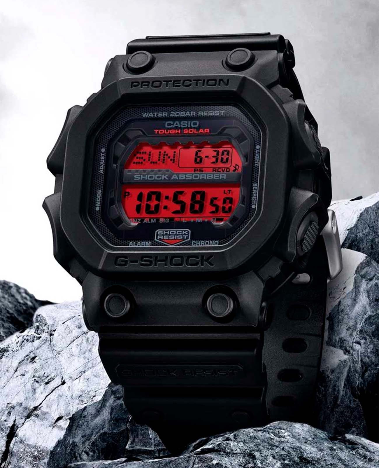 Мужские кварцевые часы Casio из коллекции G-Shock — это прочный и технологичный аксессуар для активного образа жизни. Корпус размером 53,6 мм и толщиной 17,5 мм выполнен из пластика. Циферблат красного цвета защищён минеральным стекломМинеральное стеклоМинеральное стекло представляет собой искусственно выращенный минерал кварца. Такое стекло отличается особой устойчивостью к повреждениям и царапинам. Уступает по некоторым качествам сапфировому стеклу.. Модель оснащена системой питания от солнечной энергии Tough SolarTough SolarТехнология основана на подзарядке аккумулятора от источника солнечного света, специальная панель улавливает солнечные лучи и преобразует их в энергию для работы часов. Достаточно пары минут нахождения на солнце для функционирования часов в течении суток., которая обеспечивает до 13 месяцев автономной работы без подзарядки, а в режиме энергосбережения — до 27 месяцев. Индикатор заряда батареи позволяет контролировать уровень энергии. Функция автоматического сохранения энергии отключает дисплей при длительном отсутствии действий. Подсветка — светодиоднаяСветодиодная подсветкаСветодиодная или LED-подсветка обеспечивает появление яркого холодного свечения за счёт LED-элементов - маленьких лампочек. Они потребляют минимальное количество энергии, чаще всего можно встретить 1 светодиод, в нижней части циферблата., белого цвета, с настраиваемым послесвечиванием (1,5 или 3 секунды). Часы оснащены функциями хронографаХронографФункция позволяет измерять отрезки времени с особой точностью: часы, минуты, секунды. Верным признаком хронографа является наличие на циферблате 3 дополнительных окошек-счётчиков., SPLIT-режимомСплит-хронографИспользуется для измерения продолжительности нескольких временных отрезков, начинающихся одновременно, а заканчивающихся в разное время., таймера обратного отсчётаТаймерОтсчитывает секунды в обратном направлении в заданном интервале времени. (от 1 минуты до 24 часов) и мирового времениМировое время Полезное часовое усложнение, отображающее время в основных городах и известных областях по всему миру, оно связано с часовыми поясами, удобно для путешественников и бизнесменов. — 38 городов (31 часовой пояс), поддержка UTC и летнего времени. Также присутствуют 5 будильников, ежечасный сигнал и возможность включения/отключения звука. Календарь — автоматический (до 2099 года). Противоударная конструкция защищает механизм от ударов и вибрацииУдаропрочный корпусМеханизм заключён в корпус, выполненный из современных материалов, устойчивых к ударам, механическим повреждениям и падению с высоты: инновационный пластик, карбон, нержавеющая сталь, титан., а также предотвращает попадание пыли и грязи внутрь корпуса. Стальная задняя крышка крепится на 4 винта. Часы оснащены пластиковым ремешком с классической пряжкой. Водонепроницаемость 200 м позволяет использовать часы для плавания и дайвинга. Идеальный выбор для тех, кто ценит надёжность, технологии и экстремальные условия.