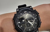 Эргономичные и функциональные часы понравится современному мужчине, который отдает предпочтение практичным вещам. Часы-хронографХронографФункция позволяет измерять отрезки времени с особой точностью: часы, минуты, секунды. Верным признаком хронографа является наличие на циферблате 3 дополнительных окошек-счётчиков. с секундомеромСекундомерСекундоме́р — прибор, способный измерять интервалы времени с точностью до долей секунды. с точностью показаний 1с и временем измерения 10мин. Ретроградный указатель минутной стрелки хронографа. 12-ти и 24-х часовой формат времени. Метки в виде штрихов. Окошко даты находится между метками 4 и 5 часов. Заводная головка с защитой.