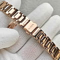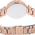 Перламутроый циферблат с кристаллами идеально смотрится в сочетании с цветом розового золота, такой оттенок был получен благодаря нанесению IP-покрытияIP-покрытиеМетод ионного напыления. Демонстрирует повышенную устойчивость к истиранию, окислению и химическим веществам. Под воздействием высокого давления и температуры около 1500°C молекулы металла надёжно соединяются с частицами корпуса часов.. В качестве декорирующих элементов использованы оригинальные кристаллы Swarovski с роскошным сиянием. Корпус и браслет выполнены из долговечной стали. циферблат защинен минеральным стекломМинеральное стеклоМинеральное стекло представляет собой искусственно выращенный минерал кварца. Такое стекло отличается особой устойчивостью к повреждениям и царапинам. Уступает по некоторым качествам сапфировому стеклу.. 12-ти и 24-х часовой формат 12-ти и 24-х часовой формат времени и число вынесены на отдельные циферблаты. Ретроградный указатель дня недели.