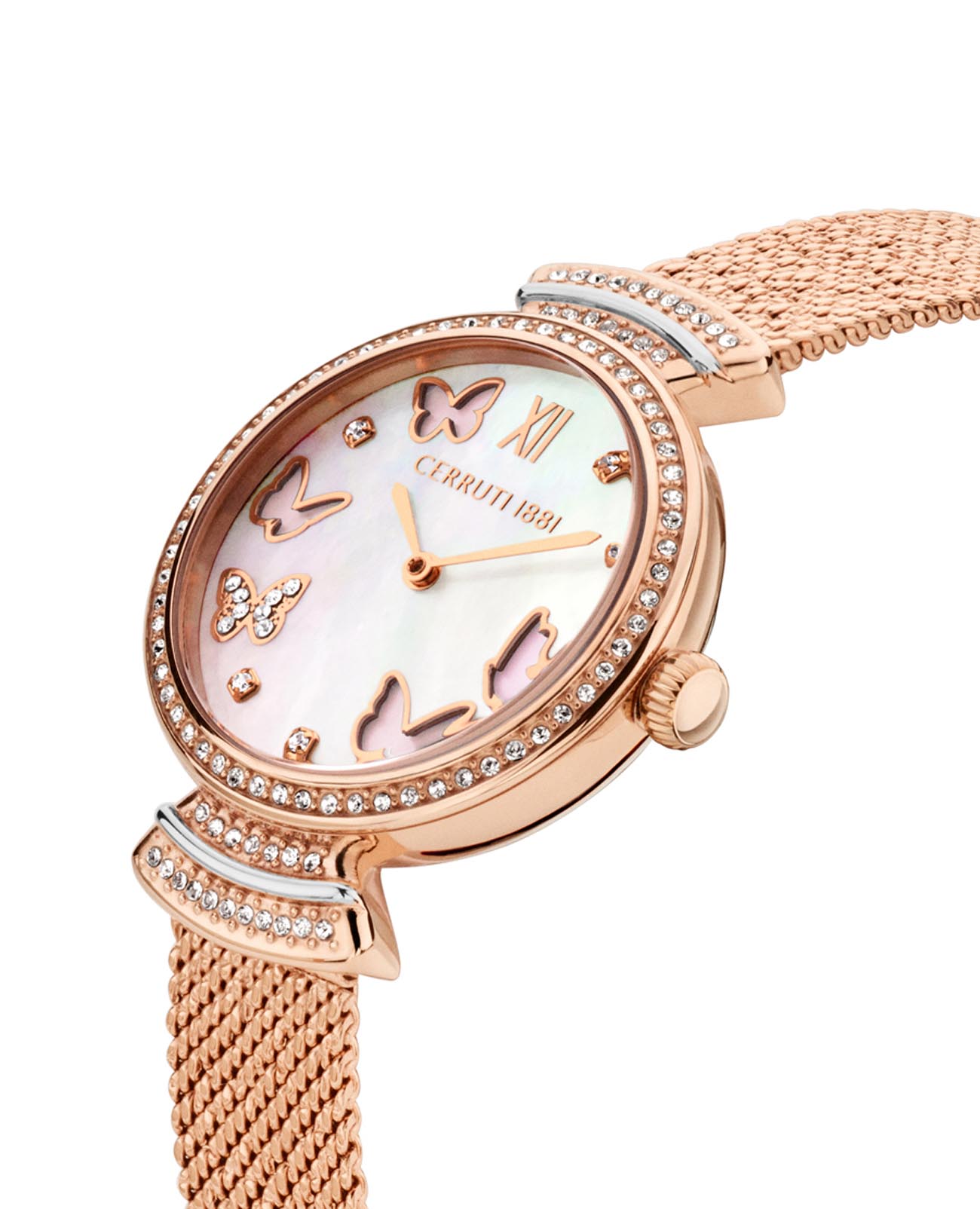 Французские женские часы с кристаллами Cerruti 1881 Cerrisi CIWLG0008703, кварцевый механизм с высокой точностью. Минеральное стеклоМинеральное стеклоМинеральное стекло представляет собой искусственно выращенный минерал кварца. Такое стекло отличается особой устойчивостью к повреждениям и царапинам. Уступает по некоторым качествам сапфировому стеклу. устойчивое к мелким механическим повреждениям. Корпус часов изготовлен из стали с IP-покрытиемIP-покрытиеМетод ионного напыления. Демонстрирует повышенную устойчивость к истиранию, окислению и химическим веществам. Под воздействием высокого давления и температуры около 1500°C молекулы металла надёжно соединяются с частицами корпуса часов.. БезельБезельВнешний ободок, закрепляющий стекло. В спортивных часах так называется поворотное кольцо с делениями на циферблате, выполняет роль таймера – замеряет отрезки времени на шкале. Неподвижный безель – элемент декора. Однонаправленно вращающийся безель на дайверских часах позволяет фиксировать моменты погружения и выныривания на поверхность. украшен кристаллами. Циферблат украшен кристаллами, римские метки. Класс водозащиты: 30 метров, позволит защитить корпус от случайных брызг или капель дождя. Стальной браслет миланского плетения с IP-покрытиемIP-покрытиеМетод ионного напыления. Демонстрирует повышенную устойчивость к истиранию, окислению и химическим веществам. Под воздействием высокого давления и температуры около 1500°C молекулы металла надёжно соединяются с частицами корпуса часов. на застёжке-бабочке с кнопкамиЗастёжка "бабочка"Такой вид застёжки дополняется предохранителями, помогающими избежать случайного раскрытия браслета. Обладают изящным исполнением. .