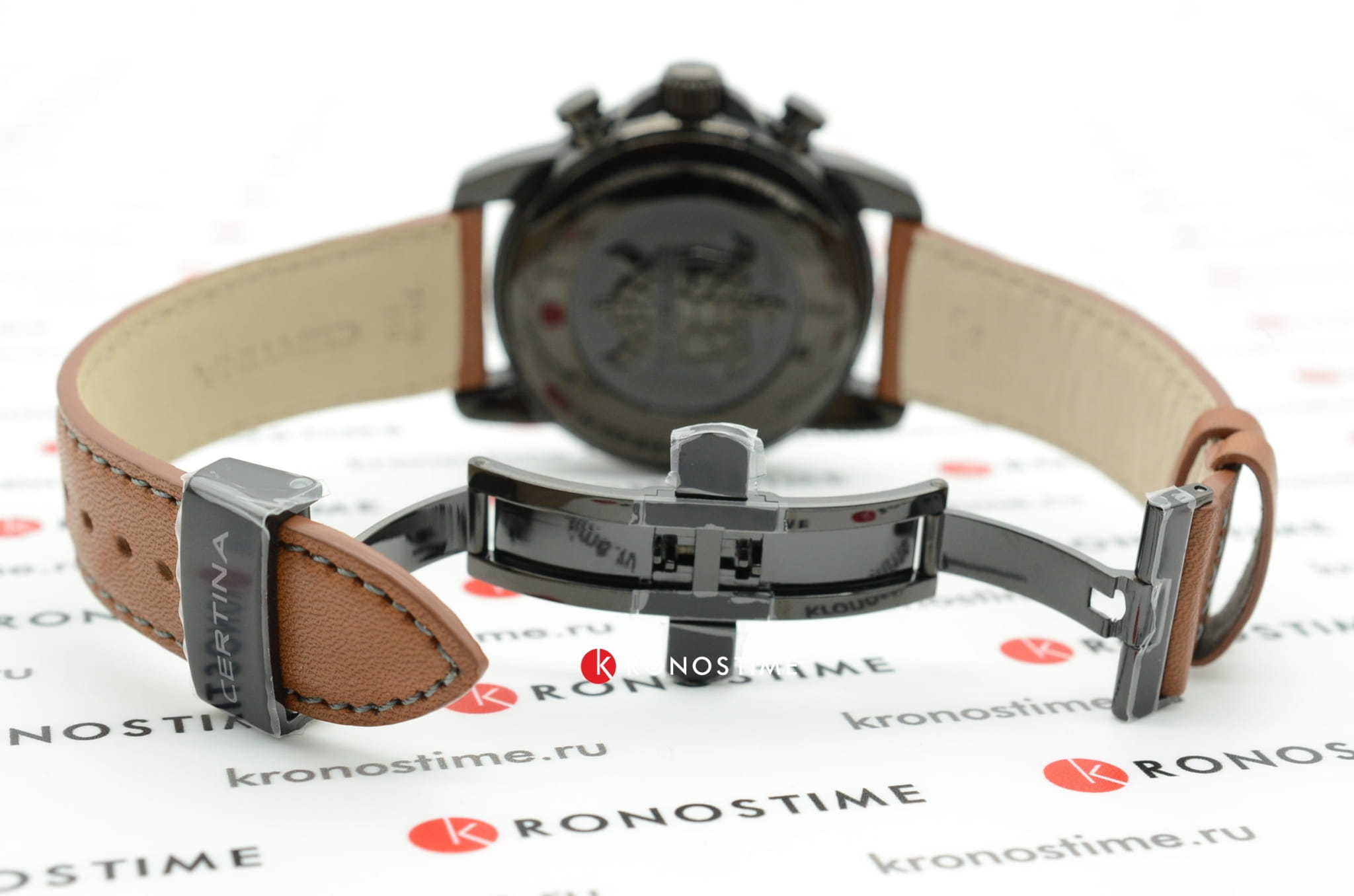 Аксессуар станет неотъемлемым атрибутом образа, наполнит его стильной динамичностью. Швейцарский кварцевый калибр ETA G10.212 Precidrive™Precidrive™Инновационный кварцевый механизм Certina. Часы, оснащённые этим швейцарским калибром, приравниваются к точности к сертифицированным хронометрам, точность хода составляет +/-10 секунд в год. измеряет время с абсолютной точностью, позволяя всегда находиться в центре событий. Концепция Двойной Надёжности DS ConceptDS ConceptDouble Security Concept, обозначает двойную надёжность и безупречную точность часов Certina. Двойная система защиты подразумевает обеспечение максимальной устойчивости к ударам и высоких показателей водонепроницаемости.. Антибликовая поверхность стекла из сапфира. Люминесцентная подсветкаЛюминесцентное покрытиеПозволяет считывать показания времени в темноте. Производители наносят на стрелки, часовые индексы, безель или поверхность циферблата светонакопительный состав, дающий холодное свечение. стрелок. БезельБезельВнешний ободок, закрепляющий стекло. В спортивных часах так называется поворотное кольцо с делениями на циферблате, выполняет роль таймера – замеряет отрезки времени на шкале. Неподвижный безель – элемент декора. Однонаправленно вращающийся безель на дайверских часах позволяет фиксировать моменты погружения и выныривания на поверхность. со шкалой тахиметраТахиметрРазмеченная шкала, располагается на ободке или безеле часов. Тахиметр позволяет рассчитать скорость на определённом участке пути, расстояние измеряется в километрах или милях.. Заводная головка с системой защиты. Ударопрочный корпусУдаропрочный корпусМеханизм заключён в корпус, выполненный из современных материалов, устойчивых к ударам, механическим повреждениям и падению с высоты: инновационный пластик, карбон, нержавеющая сталь, титан. из нержавеющей стали с чёрным PVD-покрытиемPVDУльтратонкое покрытие наносится в технике вакуумного напыления, сочетает в себе нитрид титана особой прочности со слоем золота или оксида хрома. Несёт в себе декоративную или защитную функцию.. Ремешок из натуральной кожи. Безопасная . Окошко даты, секундомер, измеряющий десятые доли секунды, индикатор EOLEOLПредставляет собой систему, уведомляющую владельца часов о необходимости замены элемента питания. За 2 недели до полного разряда батарейки секундная стрелка перестаёт ходить чётко и начинает перепрыгивать на 3-4 деления.. Диаметр корпуса: 41 мм.