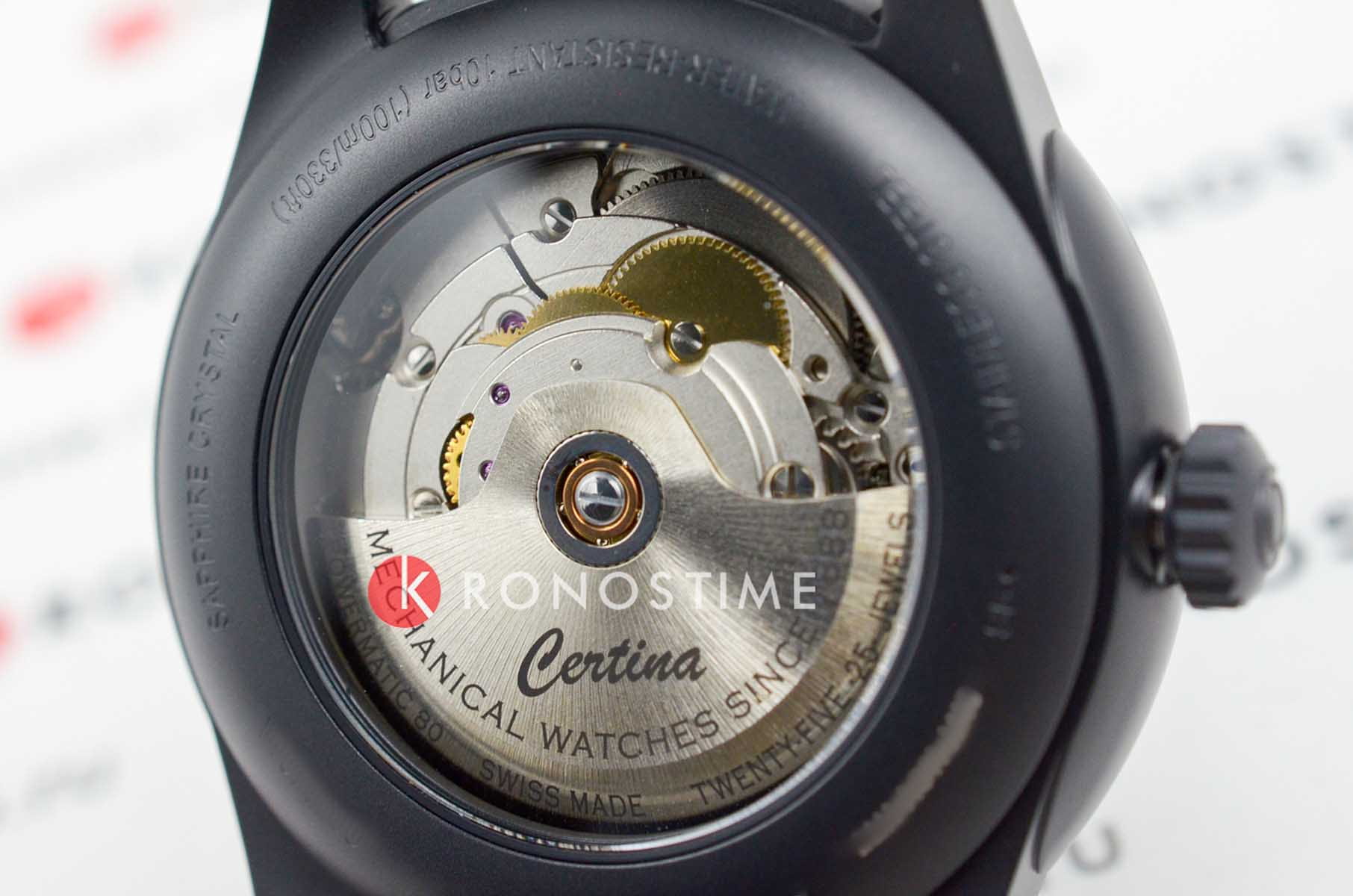 Мужские механические часы Certina C029.426.33.051.00 — это воплощение швейцарского мастерства и современной надёжности. Модель выполнена из нержавеющей стали с PVD-покрытиемPVDУльтратонкое покрытие наносится в технике вакуумного напыления, сочетает в себе нитрид титана особой прочности со слоем золота или оксида хрома. Несёт в себе декоративную или защитную функцию., что придаёт ей устойчивость к царапинам и элегантный внешний вид. Корпус диаметром 41 мм имеет толщину 11 мм, а циферблат чёрного цвета дополнен крупным окошком даты, обеспечивающим удобство считывания информации. Защиту механизма обеспечивает сапфировое стеклоСапфировое стеклоПрочный и надёжный материал из кристалла сапфира синтетического происхождения, характеризующийся особой твёрдостью и устойчивостью к царапинам и повреждениям. с антибликовым покрытием, устойчивое к повреждениям и обеспечивающее чёткую видимость показаний. Часы обладают водонепроницаемостью , что позволяет использовать их при плавании и других водных активностях. Механизм Powermatic 80Powermatic 80Эксклюзивный калибр от швейцарской компании ETA с увеличенным запасом хода до 80 часов за счёт удлинённой заводной пружины. Характеризуется улучшенной системой спуска со сниженным трением. гарантирует запас хода до 80 часов и повышенную точность. Защита от ударов и вибраций реализована благодаря технологии DS (Double Security)Ударопрочный корпусМеханизм заключён в корпус, выполненный из современных материалов, устойчивых к ударам, механическим повреждениям и падению с высоты: инновационный пластик, карбон, нержавеющая сталь, титан., что делает модель особенно надёжной в условиях активной эксплуатации. Эти часы станут универсальным аксессуаром для тех, кто ценит сочетание классического дизайна, швейцарского качества и функциональности — идеальный выбор для повседневной носки и торжественных случаев.