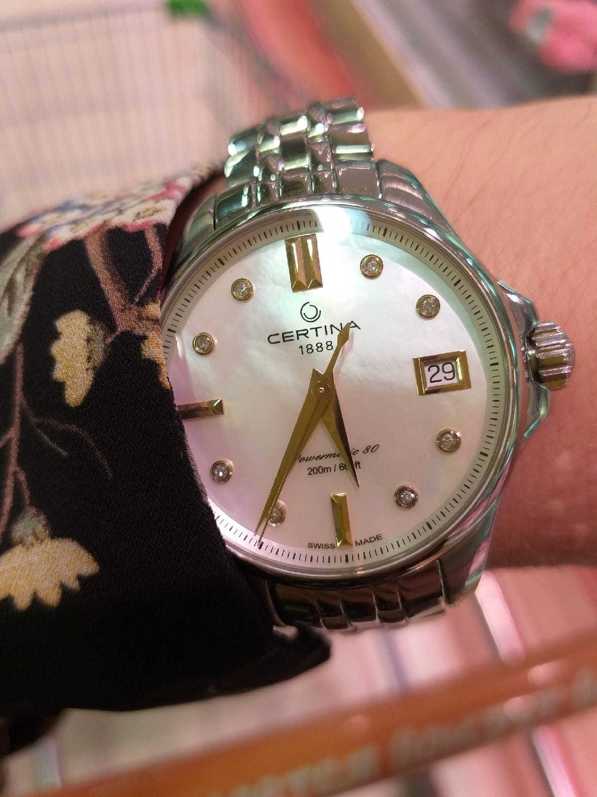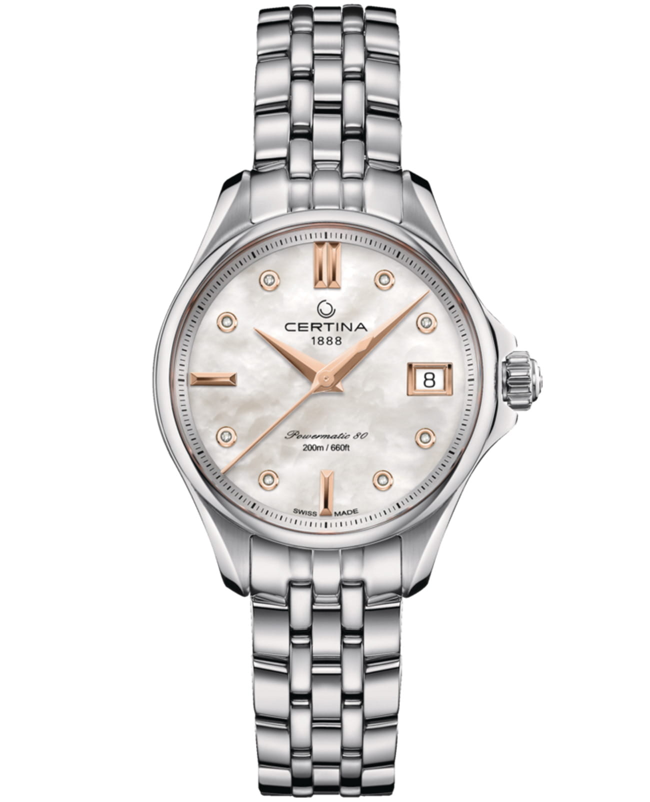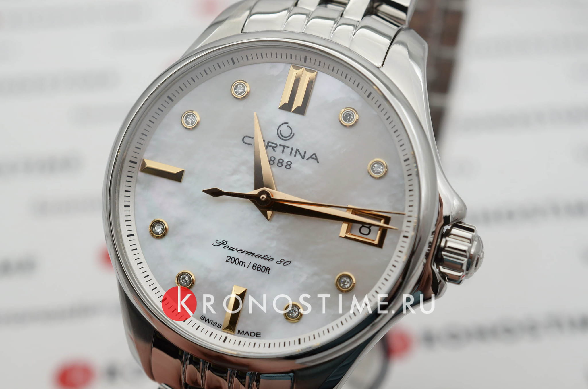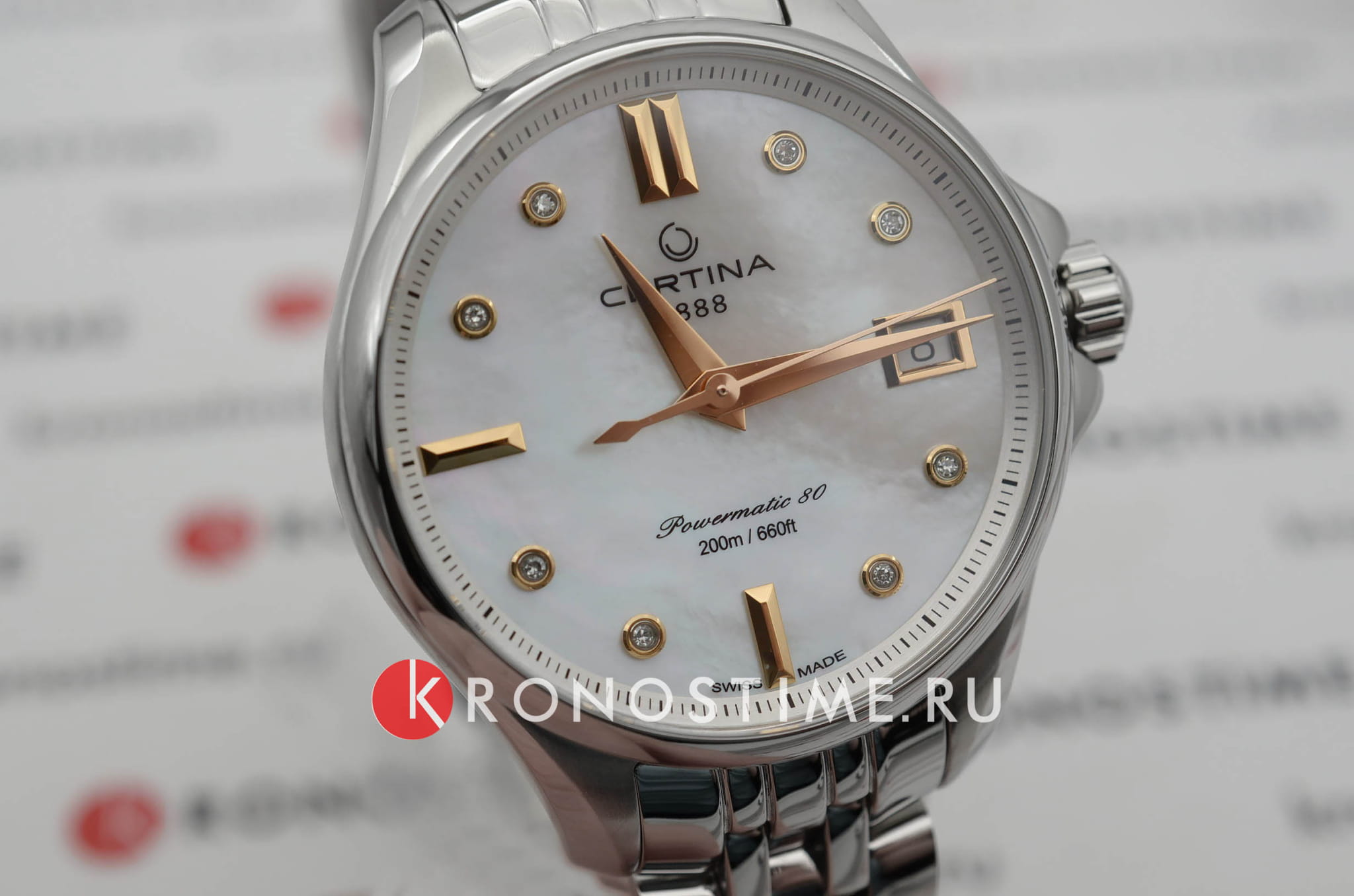 Аксессуар обладает изящным силуэтом, отражающим классический стиль и элегантность. Циферблат украшен восемью роскошными бриллиантами оттенка Top Wesselton. Калибр Powermatic с автоподзаводом не только имеет 80-часовой запас хода, но и оснащен балансирной пружиной Nivachron ™, гарантирующей надежную точность, не подверженную влиянию магнитных полей. Сверкающие бриллианты и изысканные детали создают неподвластную времени элегантность.. Концепция DS ConceptDS ConceptDouble Security Concept, обозначает двойную надёжность и безупречную точность часов Certina. Двойная система защиты подразумевает обеспечение максимальной устойчивости к ударам и высоких показателей водонепроницаемости. гарантирует повышенную ударопрочность часов и сохранение водонепроницаемости до 20 бар. Одностороннее антибликовое покрытие сапфирового стекла. Корпус и браслет из хирургической стали 316L.. Диаметр корпуса: 34,5 мм.